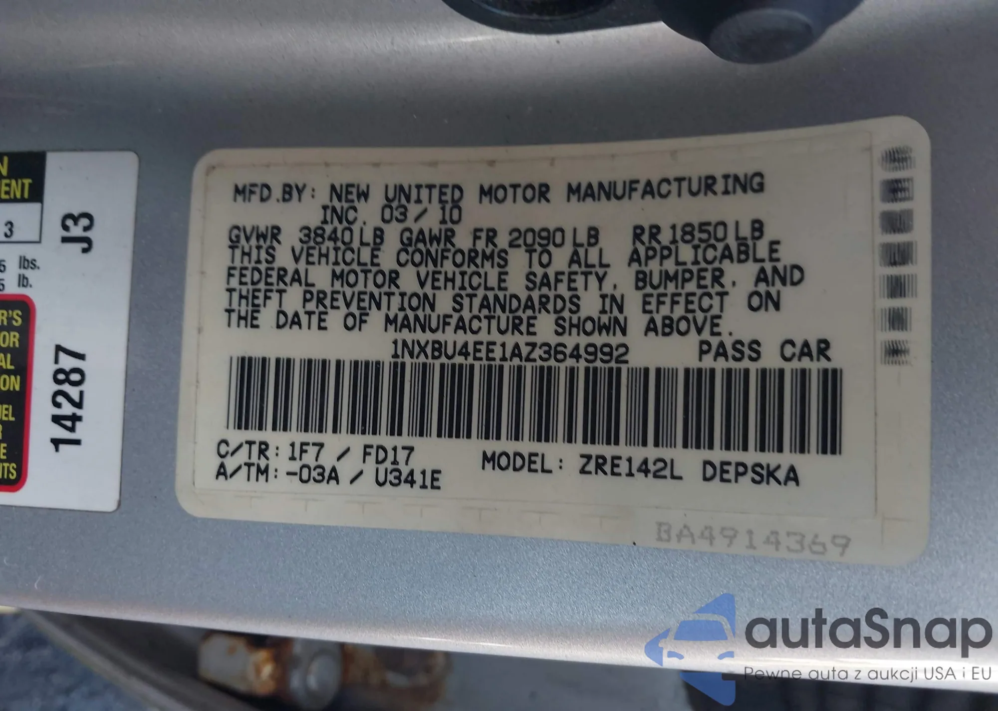 VIN: 1NXBU4EE1AZ364992