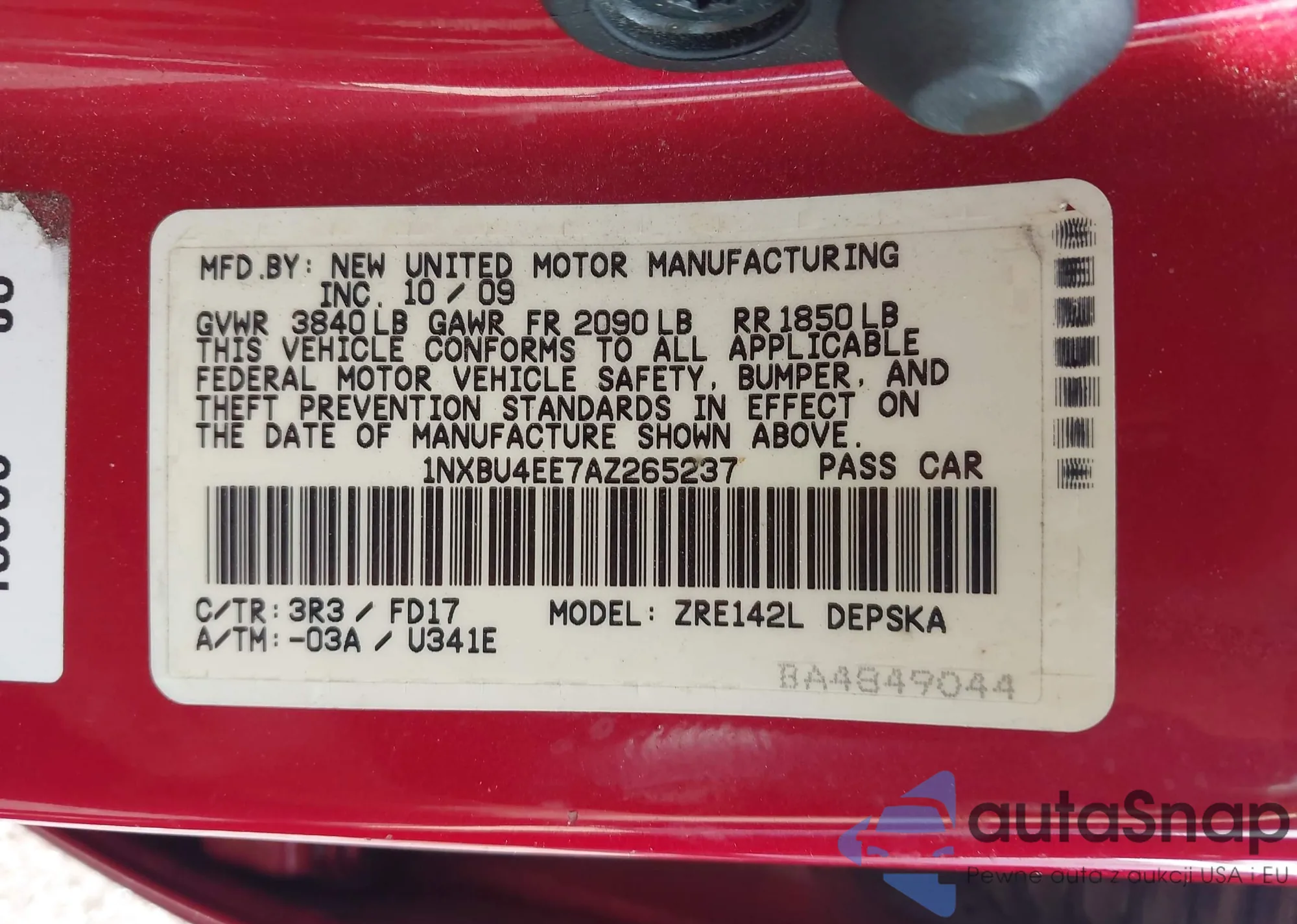 VIN: 1NXBU4EE7AZ265237