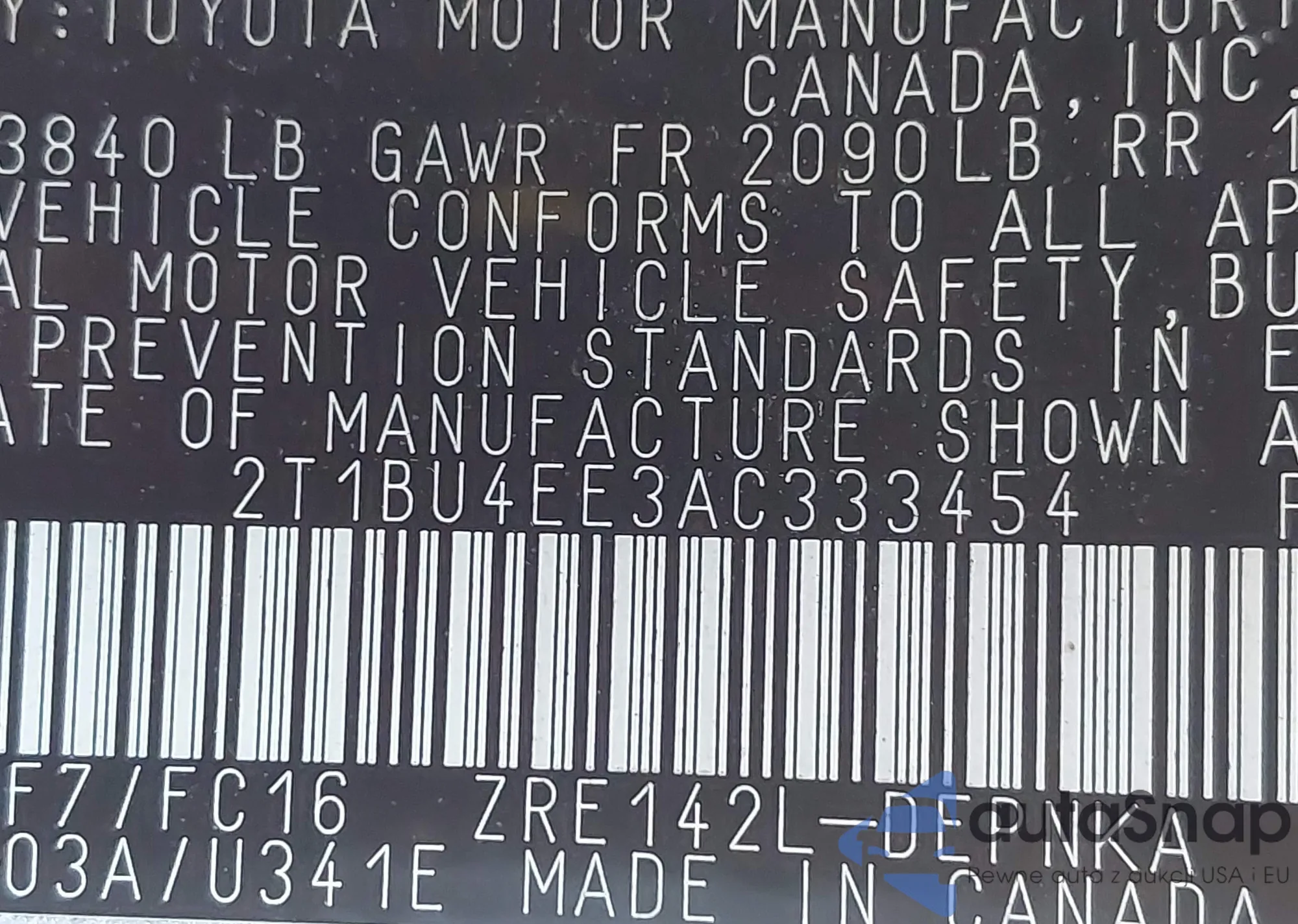 VIN: 2T1BU4EE3AC333454
