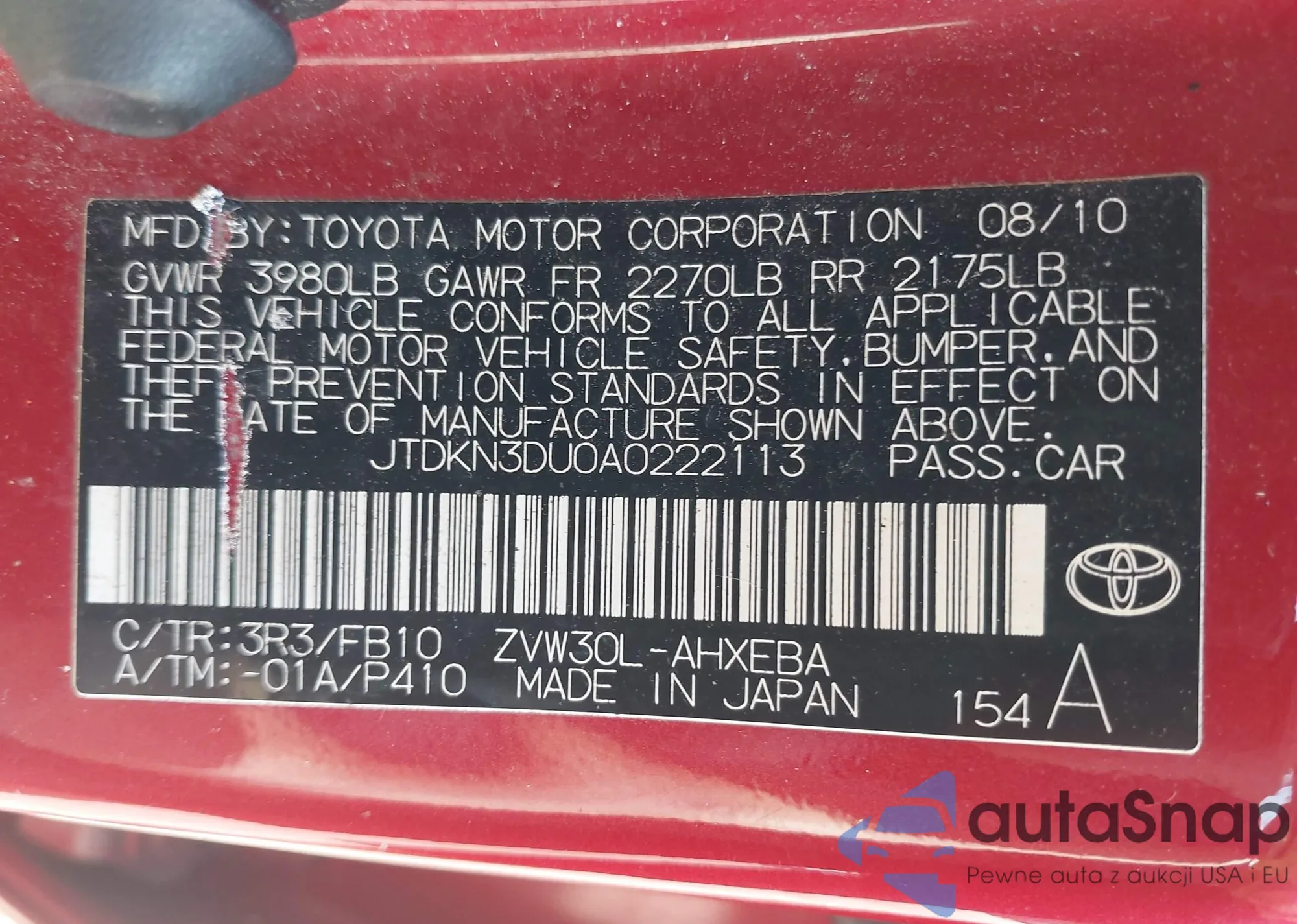 VIN: JTDKN3DU0A0222113