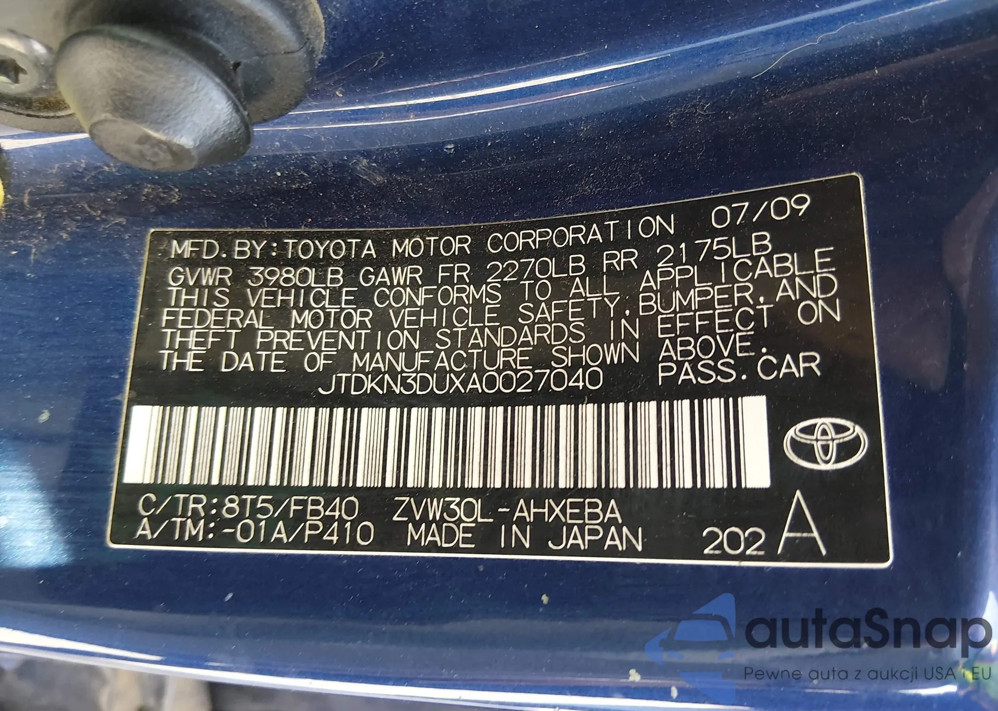 VIN: JTDKN3DUXA0027040