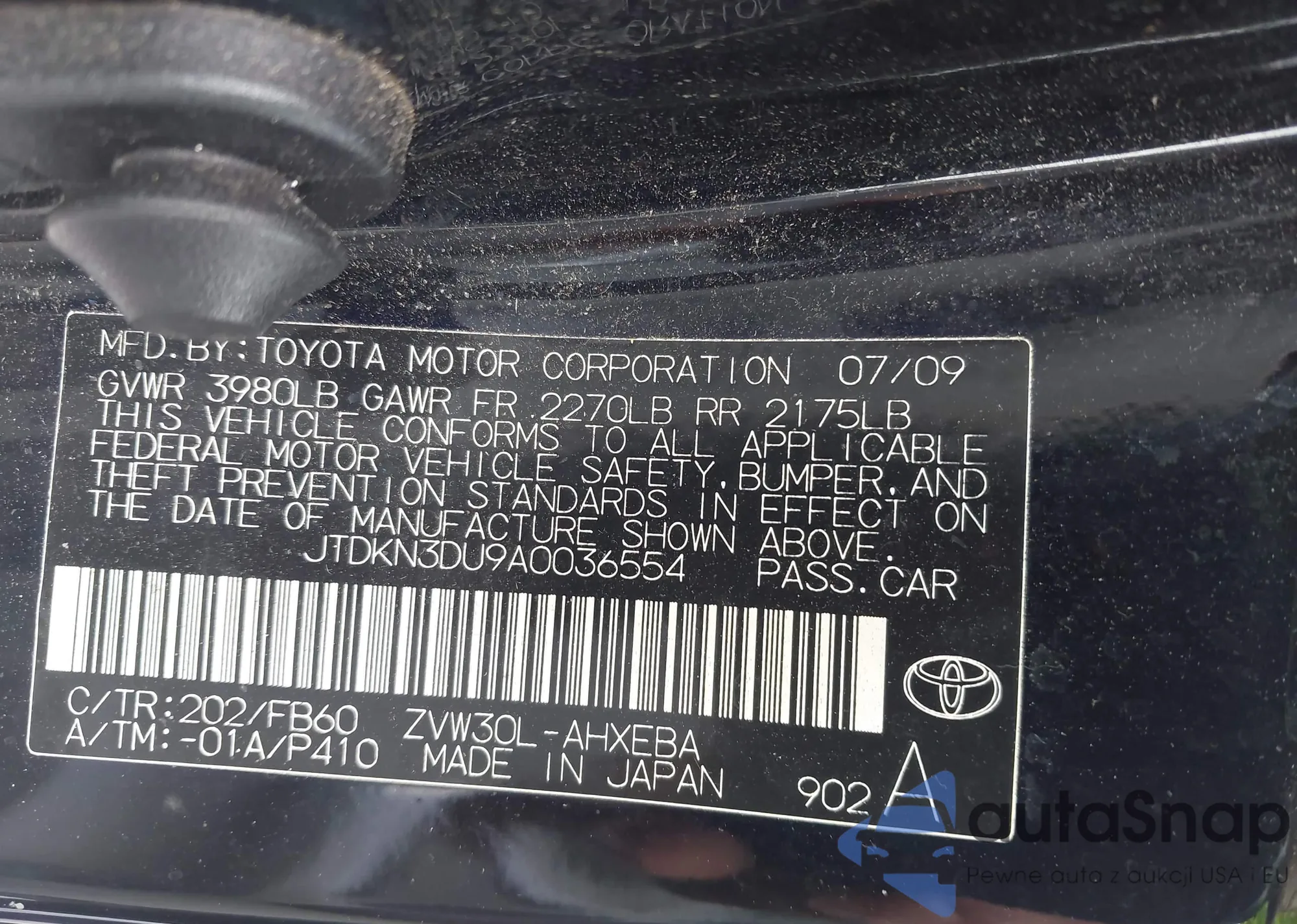 VIN: JTDKN3DU9A0036554