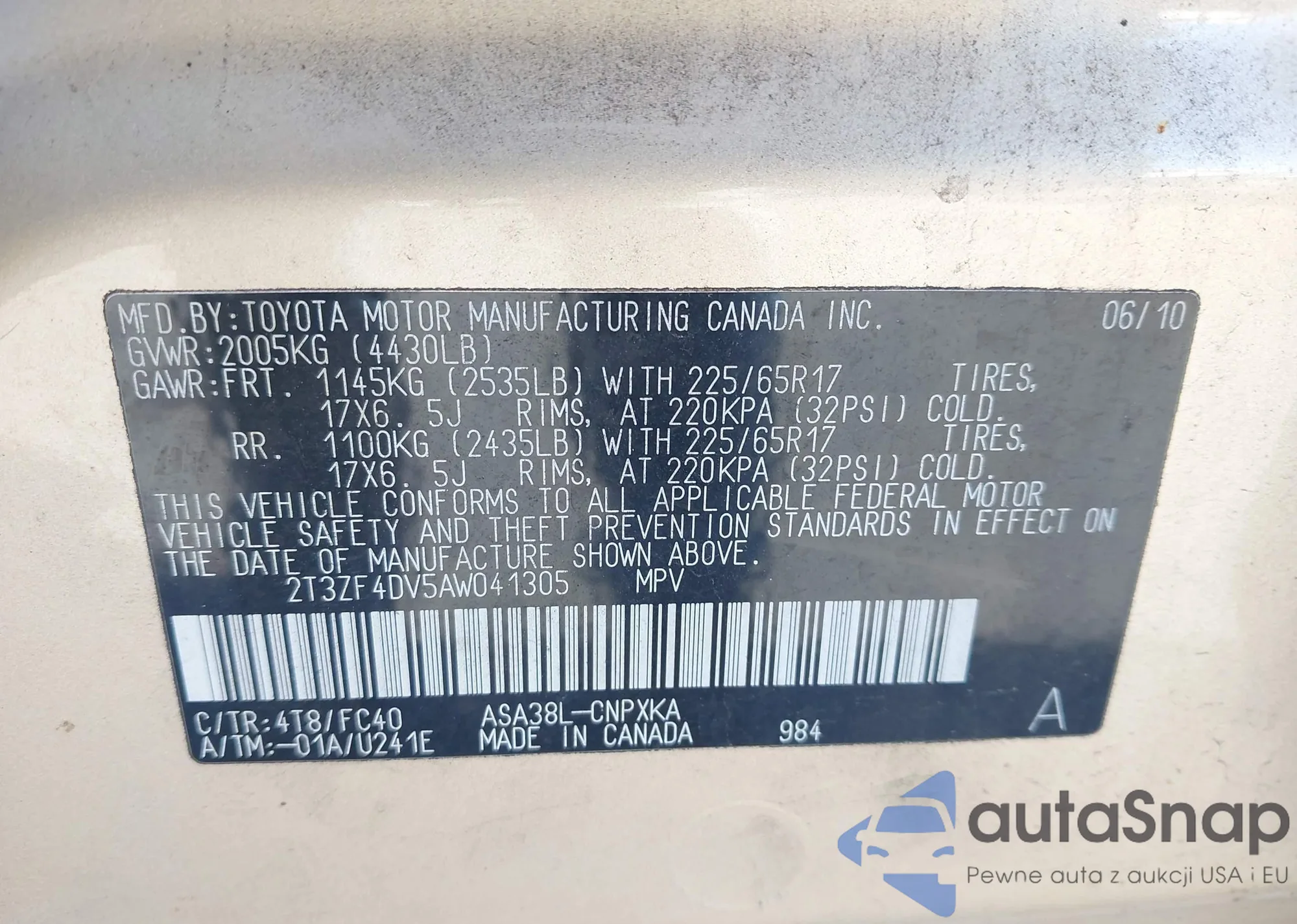 VIN: 2T3ZF4DV5AW041305