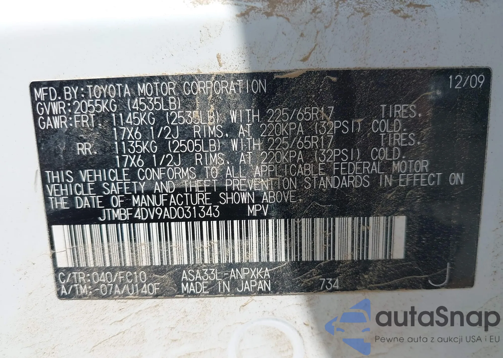 VIN: JTMBF4DV9AD031343