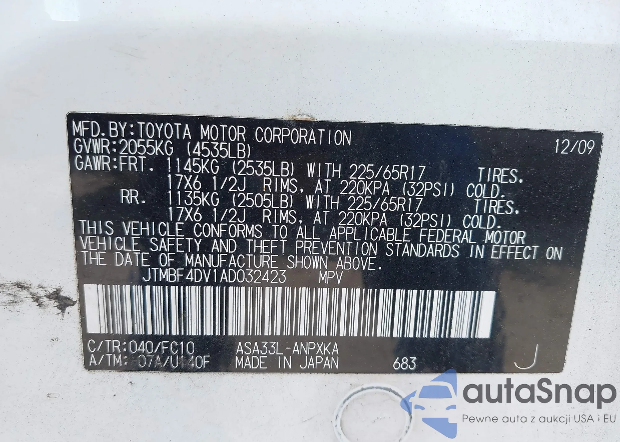 VIN: JTMBF4DV1AD032423