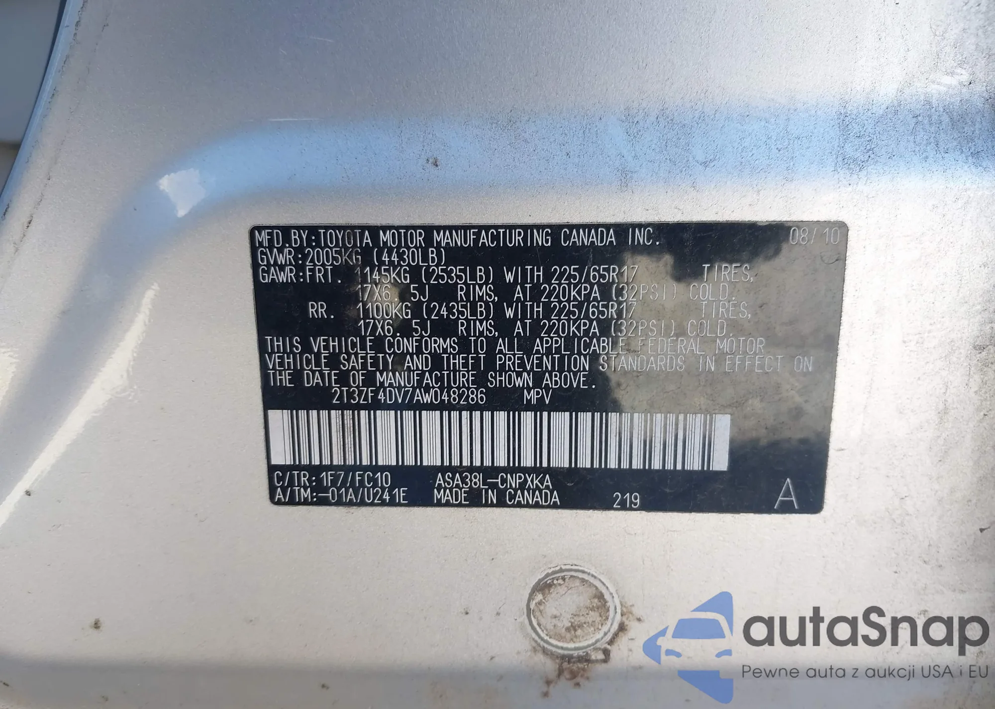 Samochód Toyota RAV 4 2010 (VIN 2T3ZF4DV7AW048286) nie był wcześniej licytowany. Dokumenty są czyste, przebieg odpowiada lub jest niższy niż średnia rynku. Sprzedaje go firma ubezpieczeniowa – polecamy zakup. Dostawa do portu zajmie ok. 6–8 tygodni.