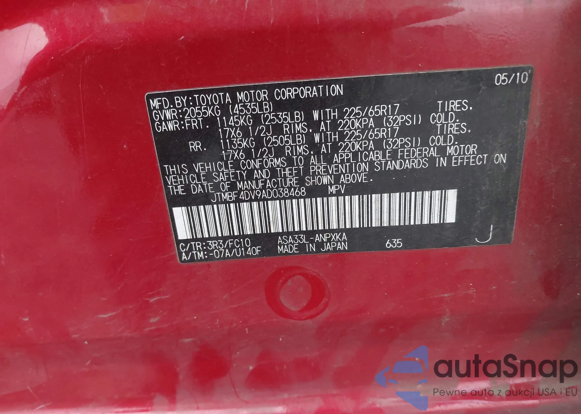 VIN: JTMBF4DV9AD038468