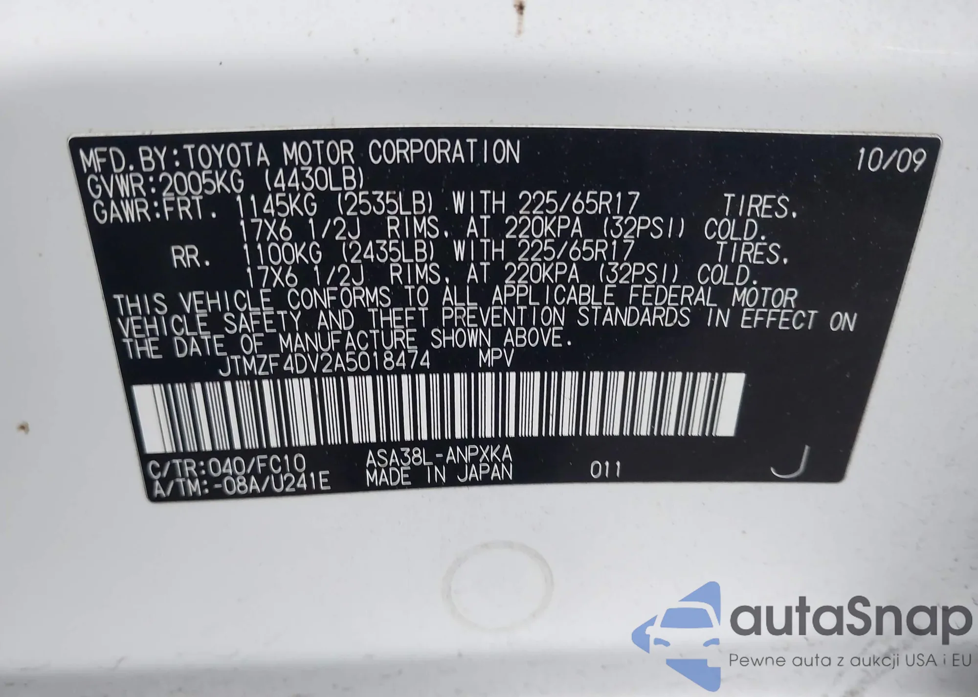 VIN: JTMZF4DV2A5018474