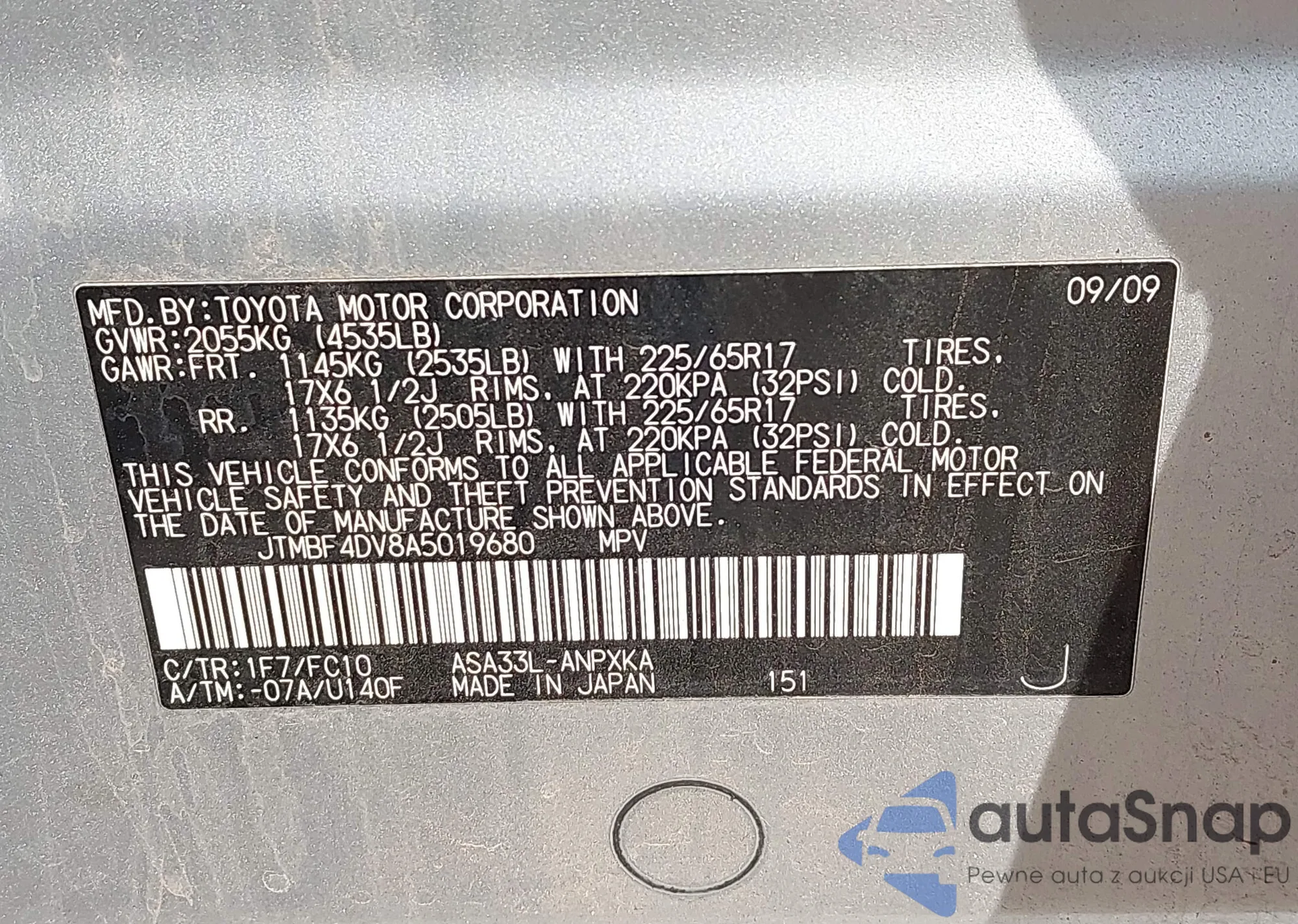 VIN: JTMBF4DV8A5019680