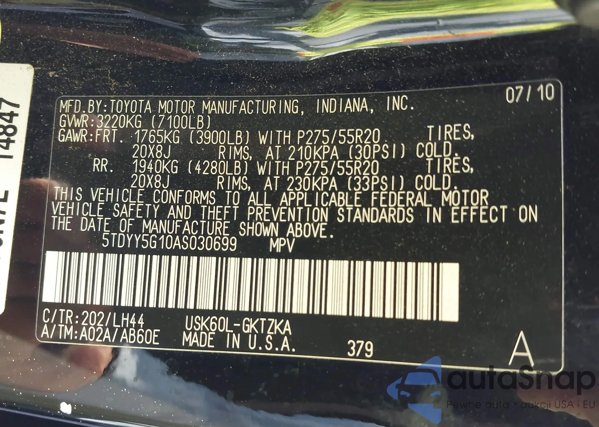 VIN: 5TDYY5G10AS030699