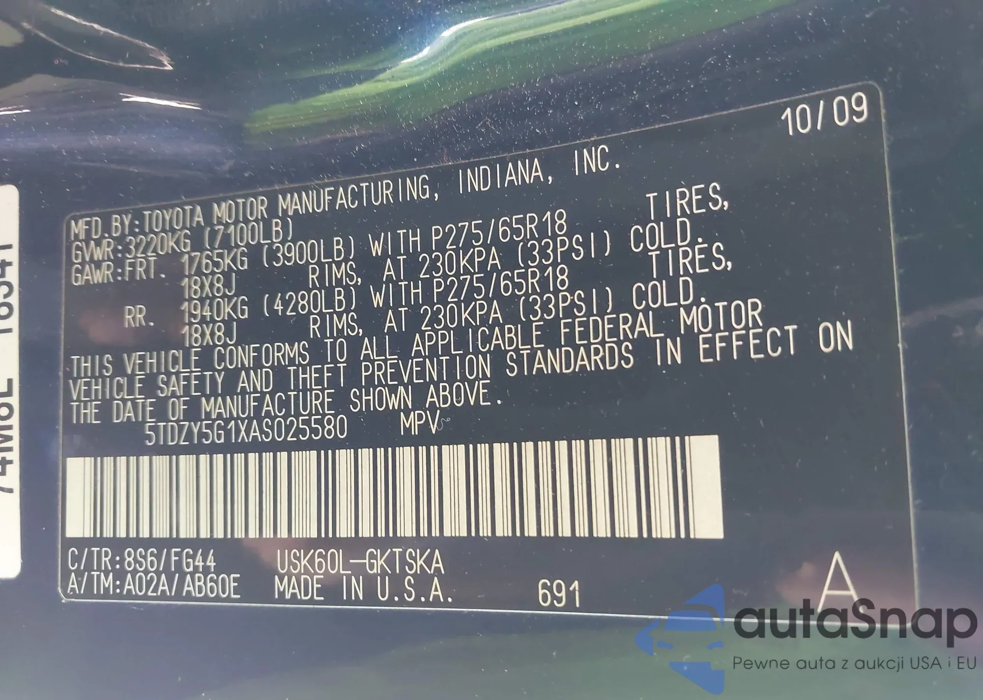 VIN: 5TDZY5G1XAS025580