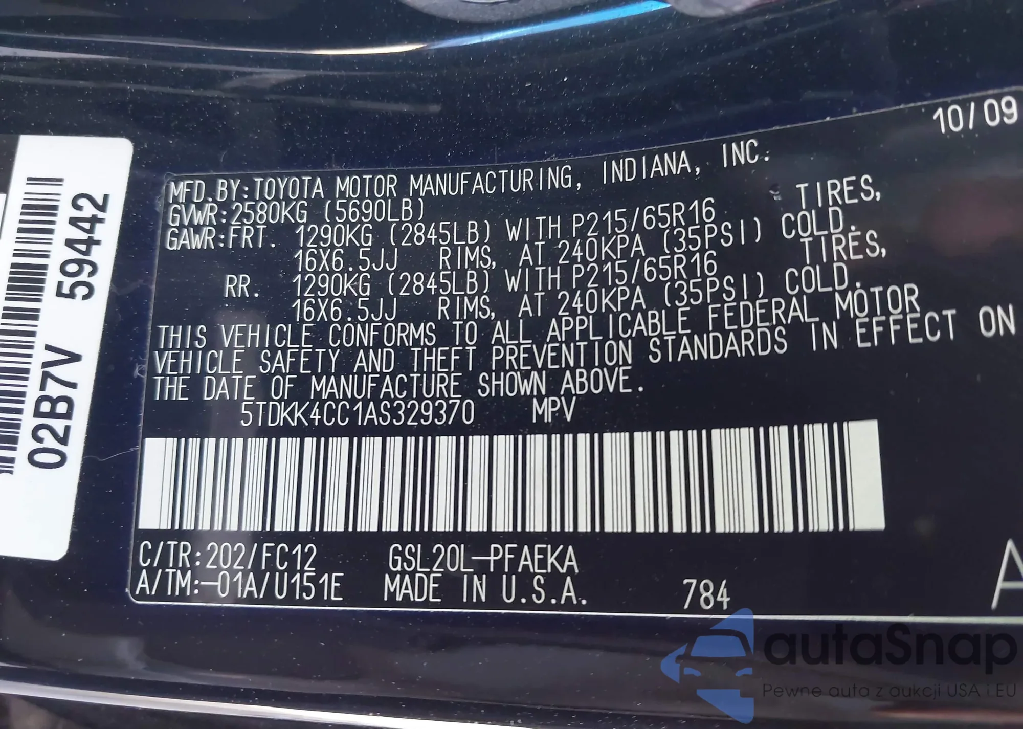 VIN: 5TDKK4CC1AS329370