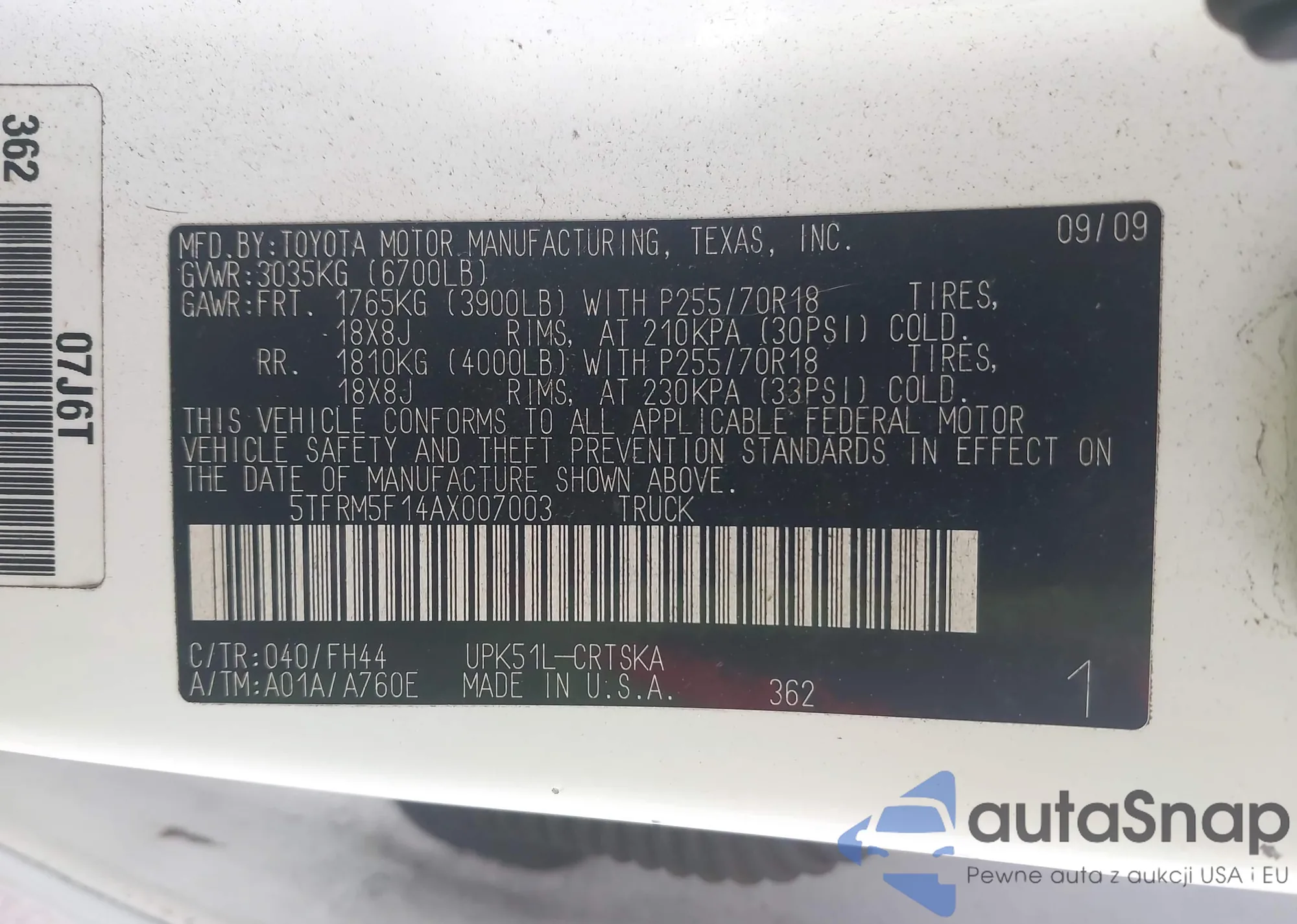 VIN: 5TFRM5F14AX007003