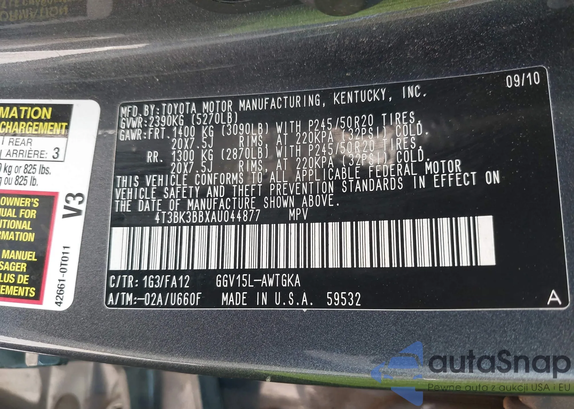 VIN: 4T3BK3BBXAU044877