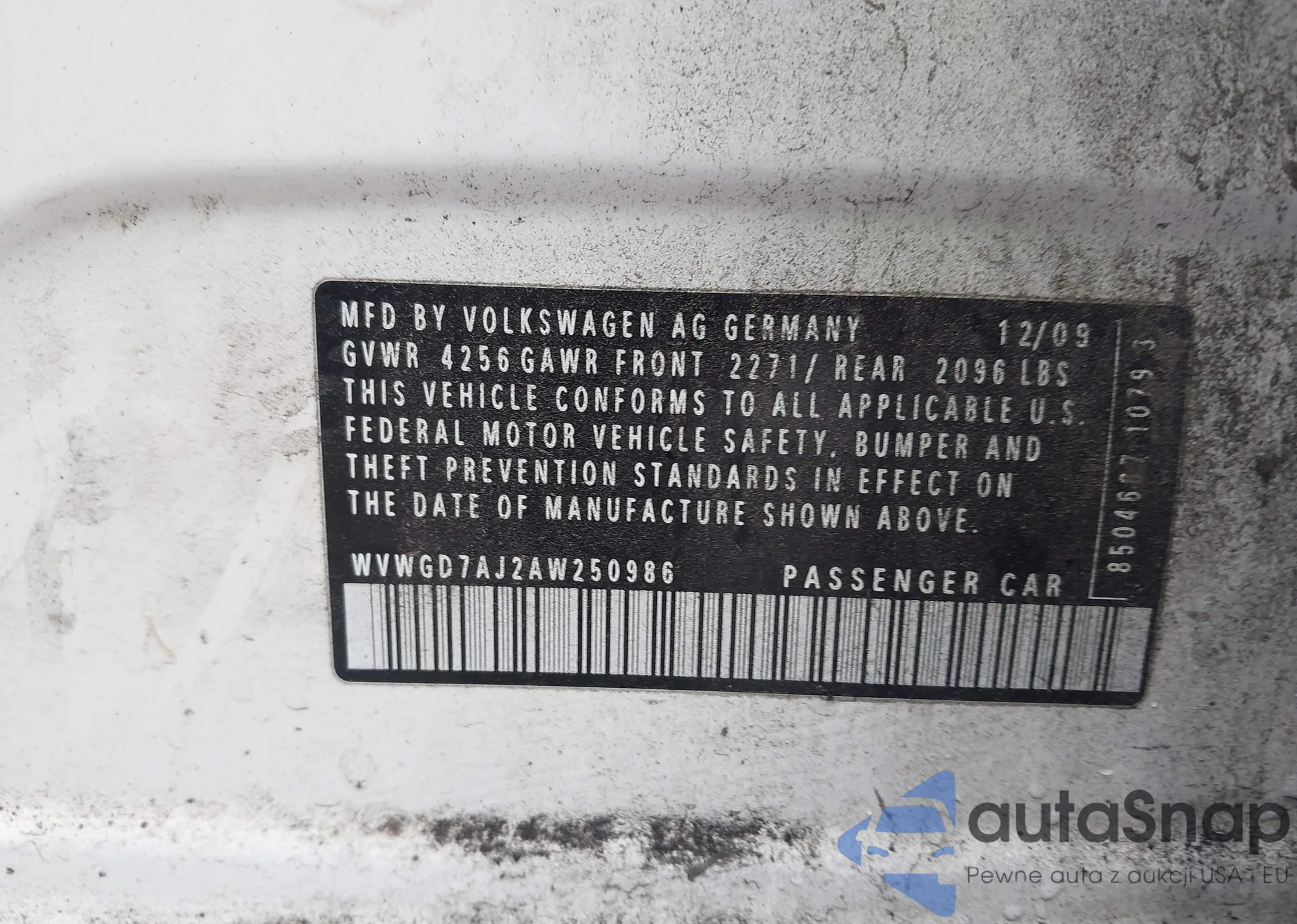 • VIN: WVWGD7AJ2AW250986