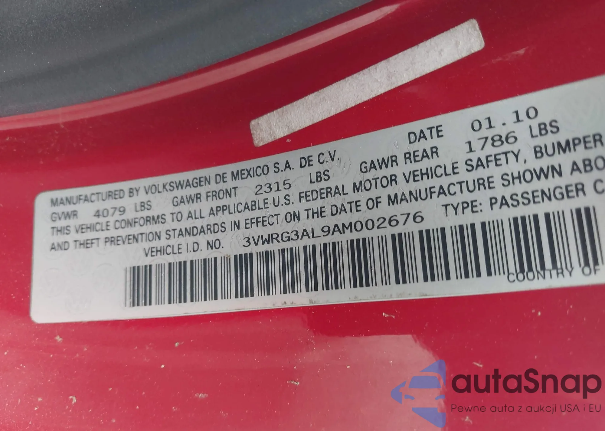 VIN: 3VWRG3AL9AM002676