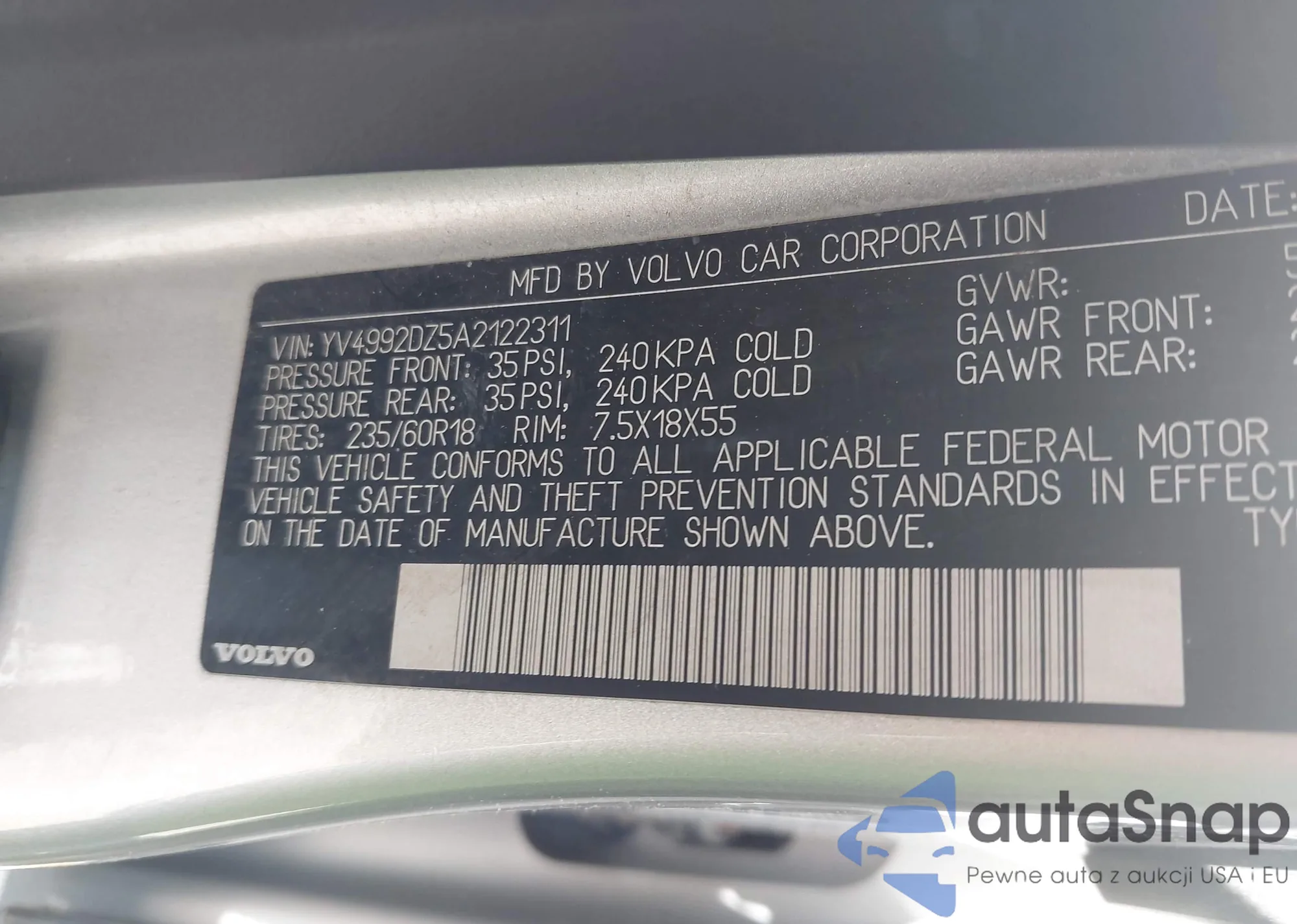 VIN: YV4992DZ5A2122311