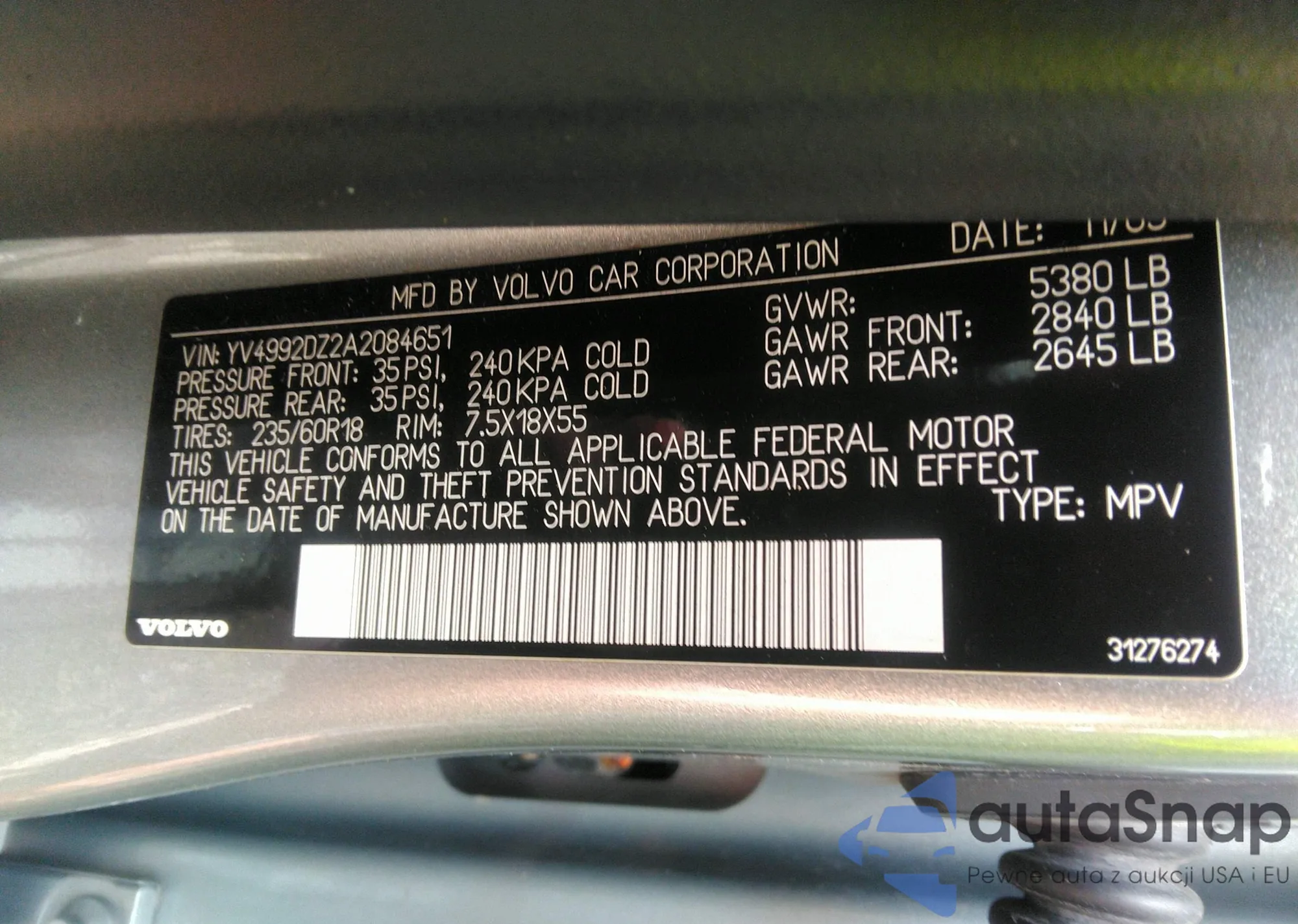 VIN: YV4992DZ2A2084651