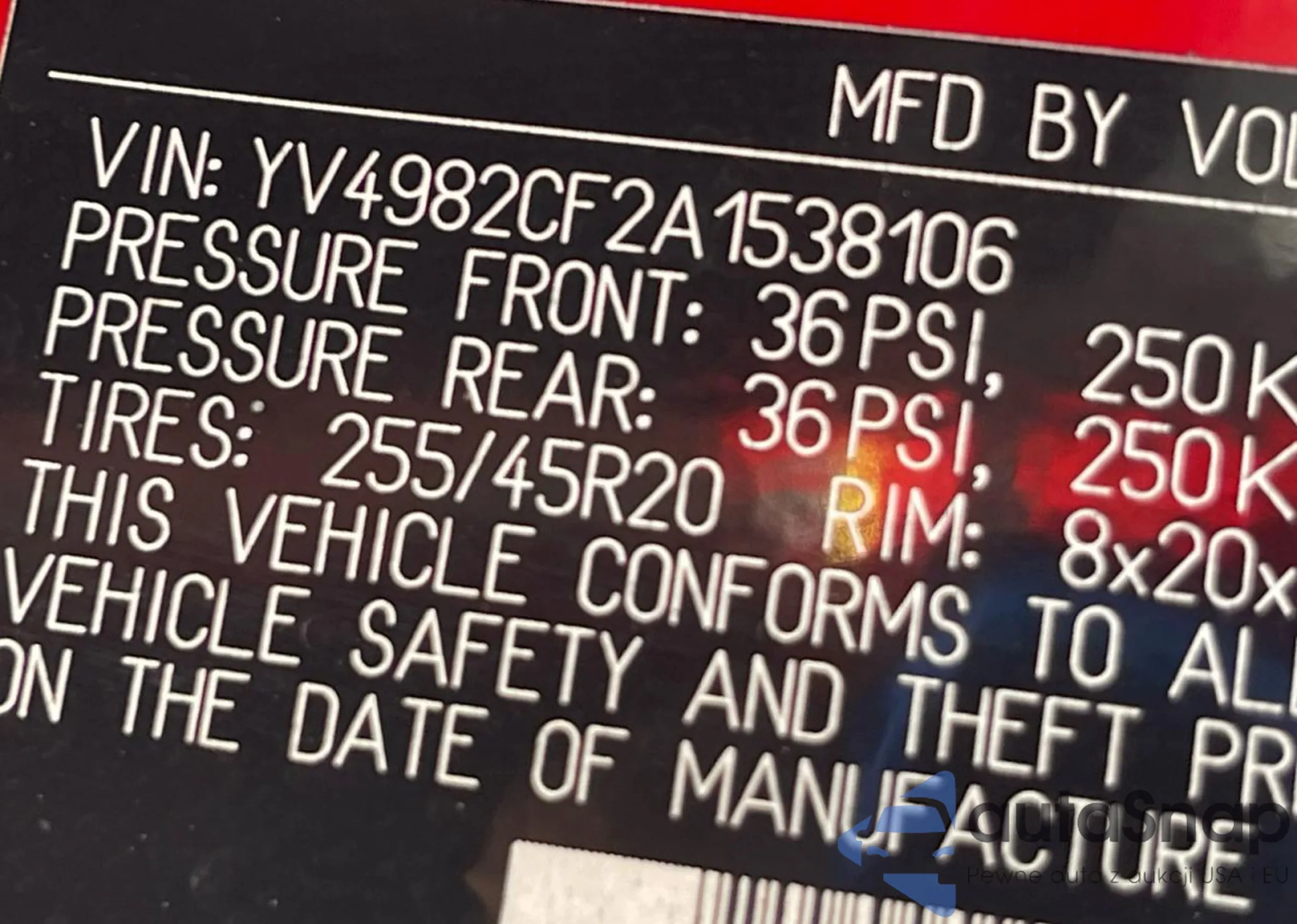 VIN: YV4982CF2A1538106