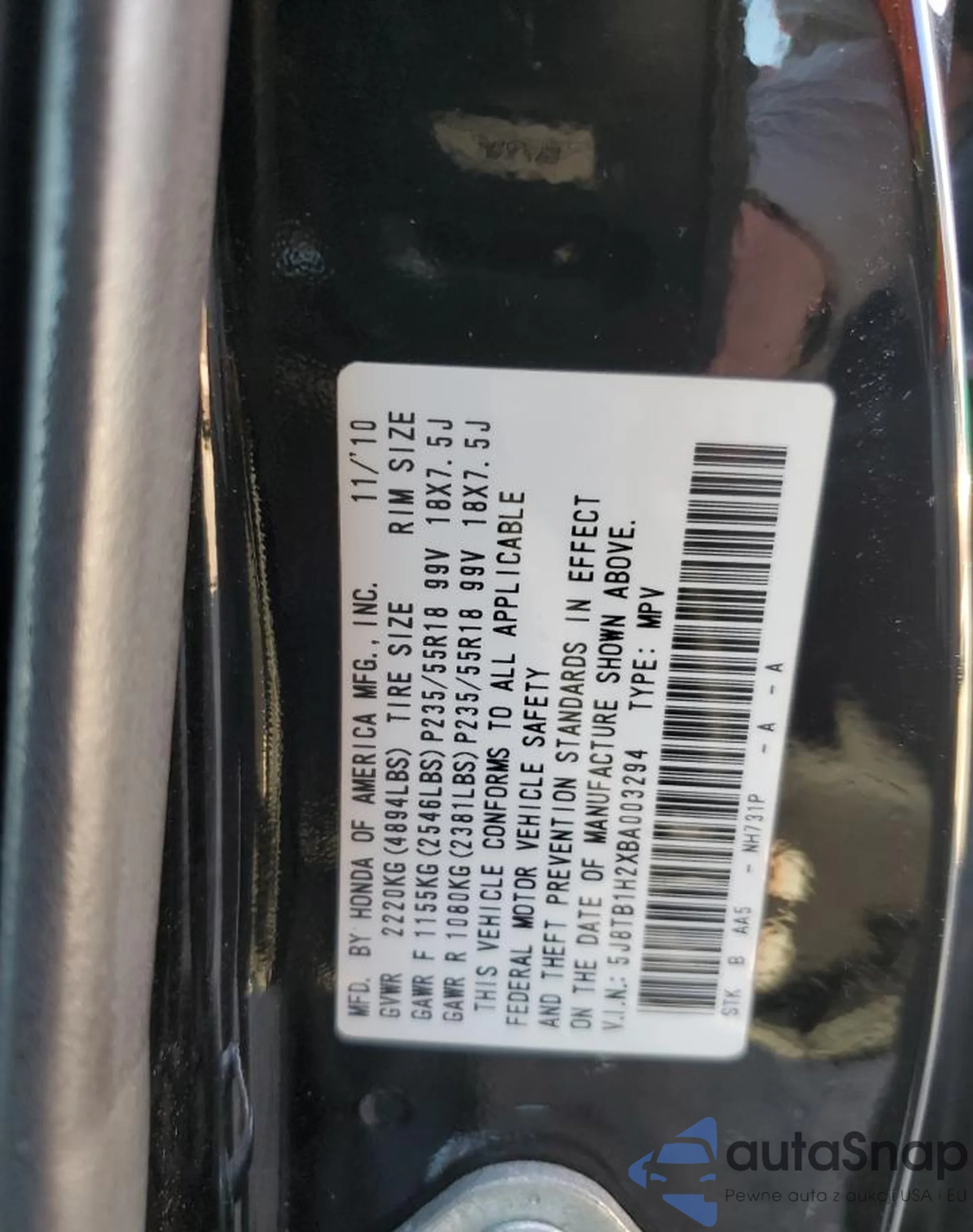 VIN: 5J8TB1H2XBA003294