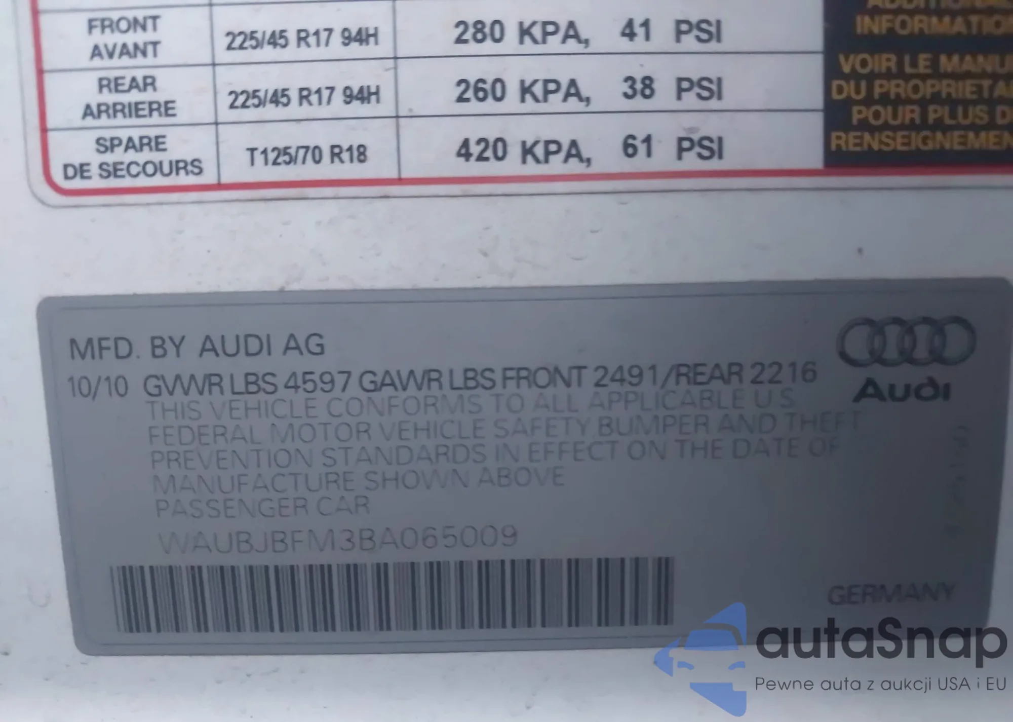 VIN: WAUBJBFM3BA065009