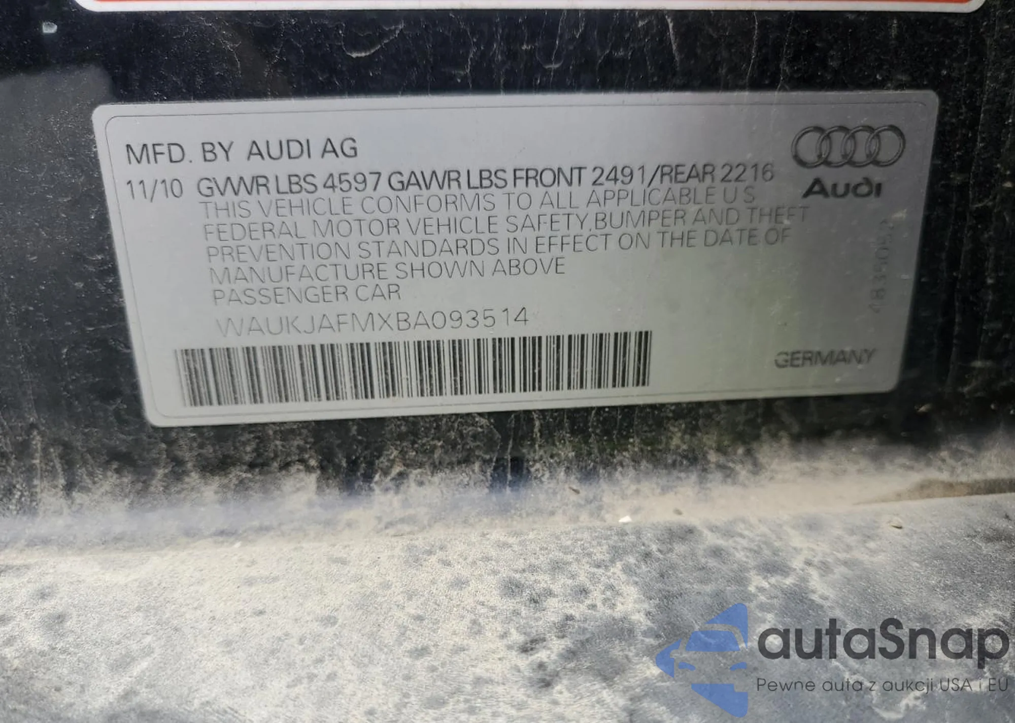 Samochód Audi A3 2011 (VIN WAUKJAFMXBA093514) nie był wcześniej licytowany. Dokumenty są czyste, przebieg odpowiada lub jest niższy niż średnia rynku. Sprzedaje go firma ubezpieczeniowa – polecamy zakup. Dostawa do portu zajmie ok. 6–8 tygodni.