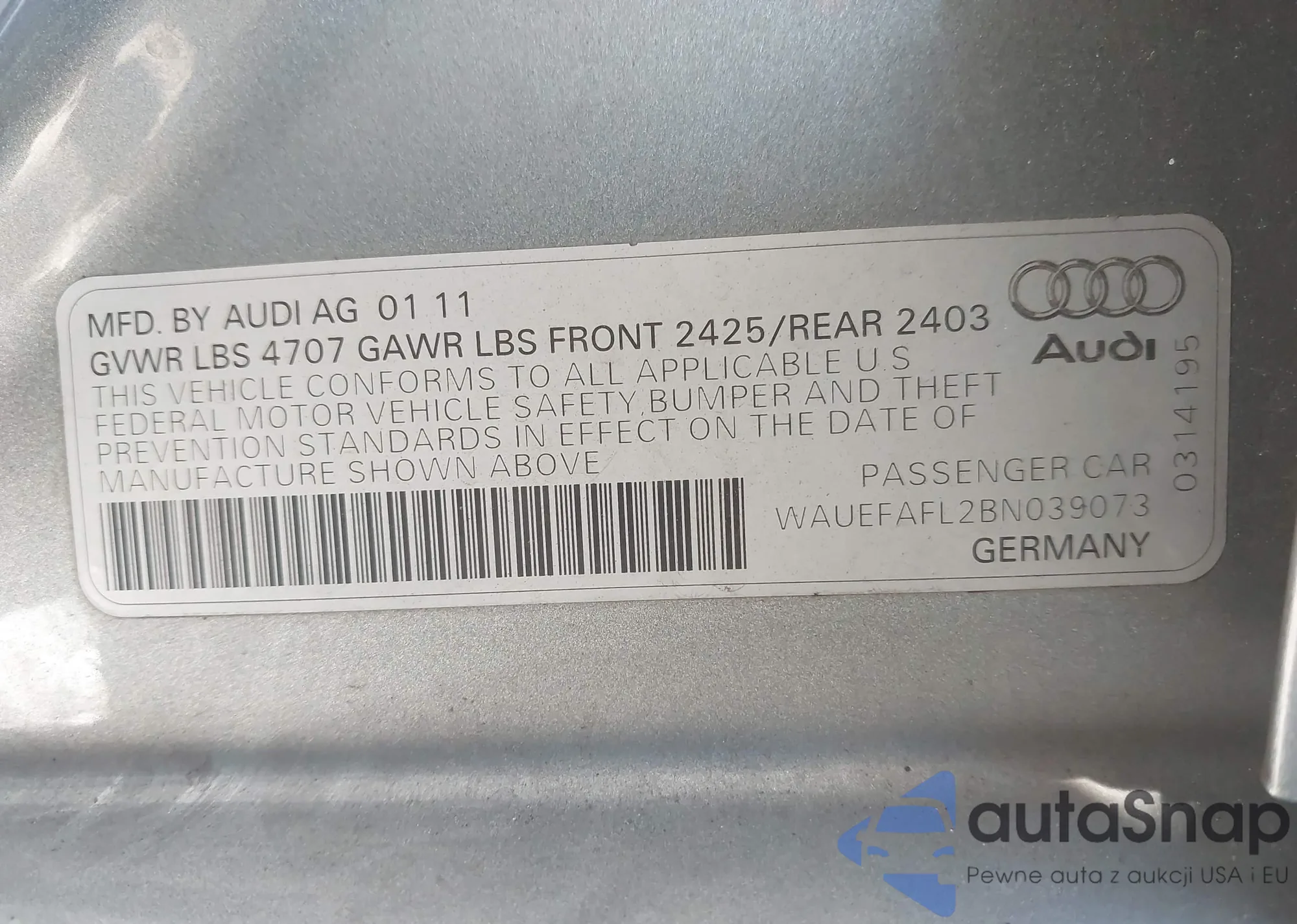 • VIN: WAUEFAFL2BN039073