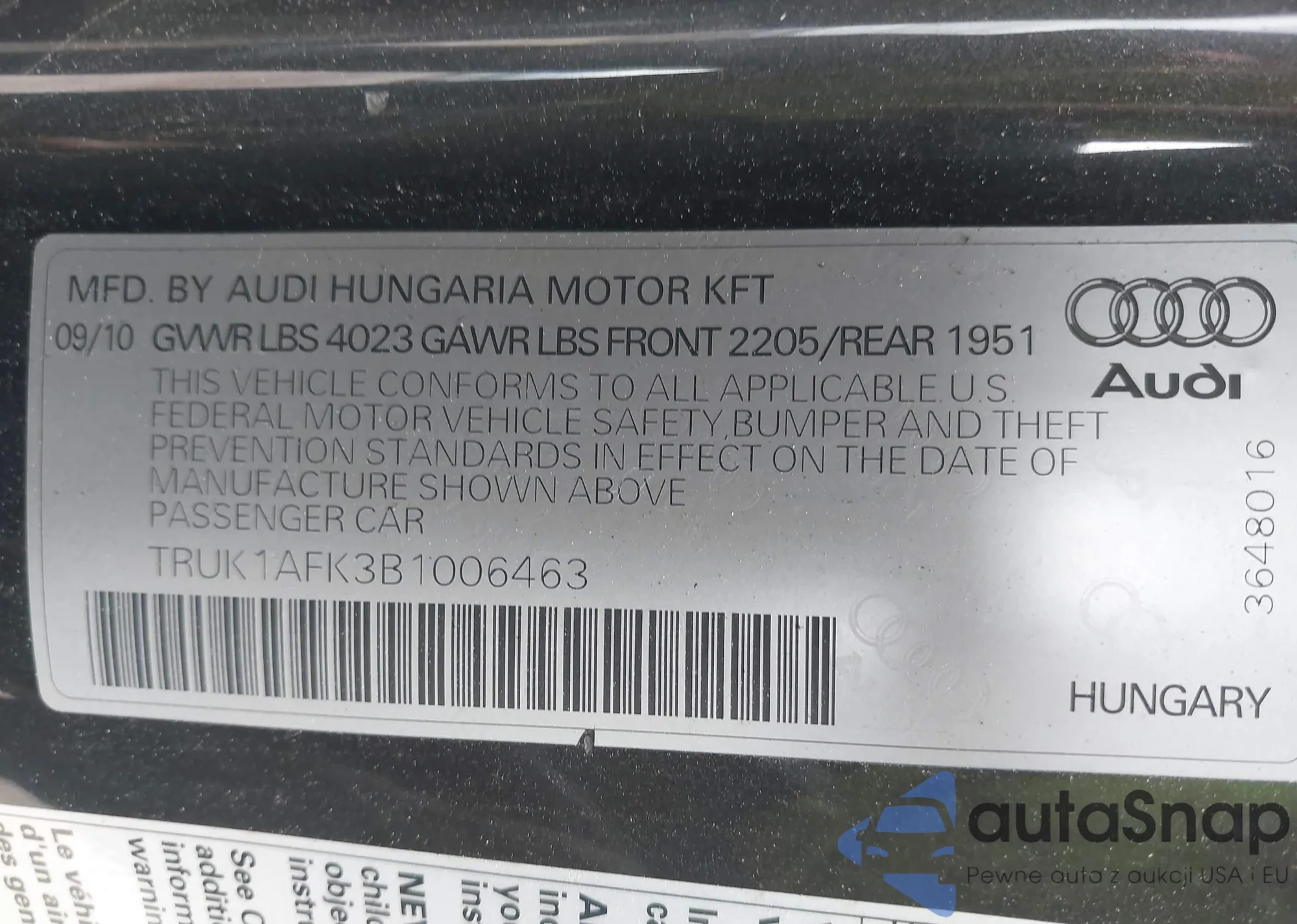 VIN: TRUK1AFK3B1006463