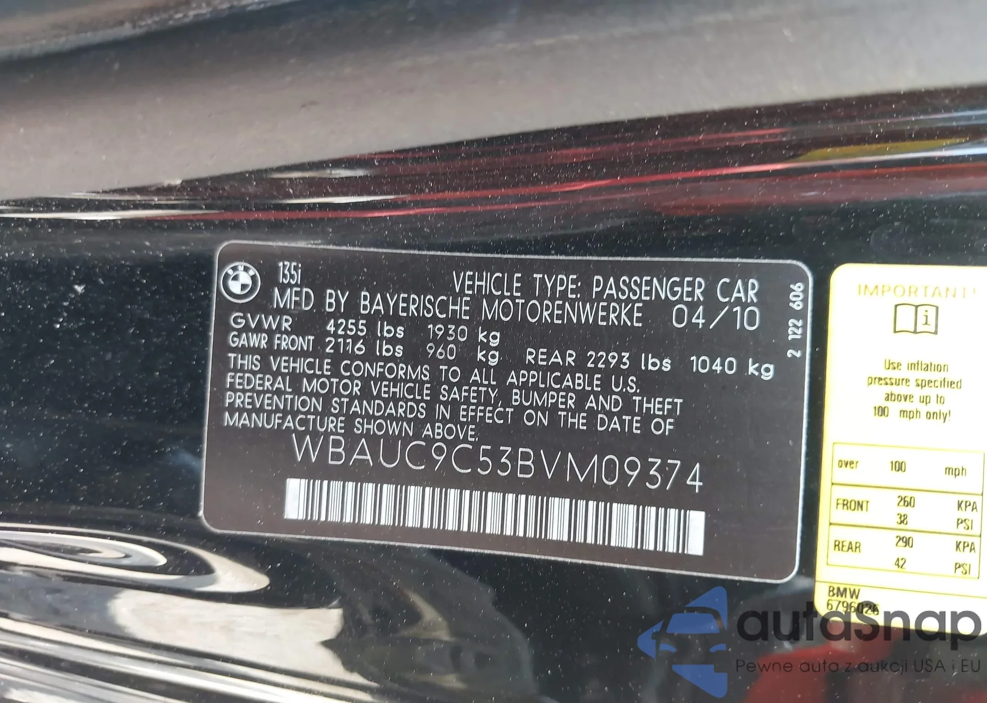VIN: WBAUC9C53BVM09374