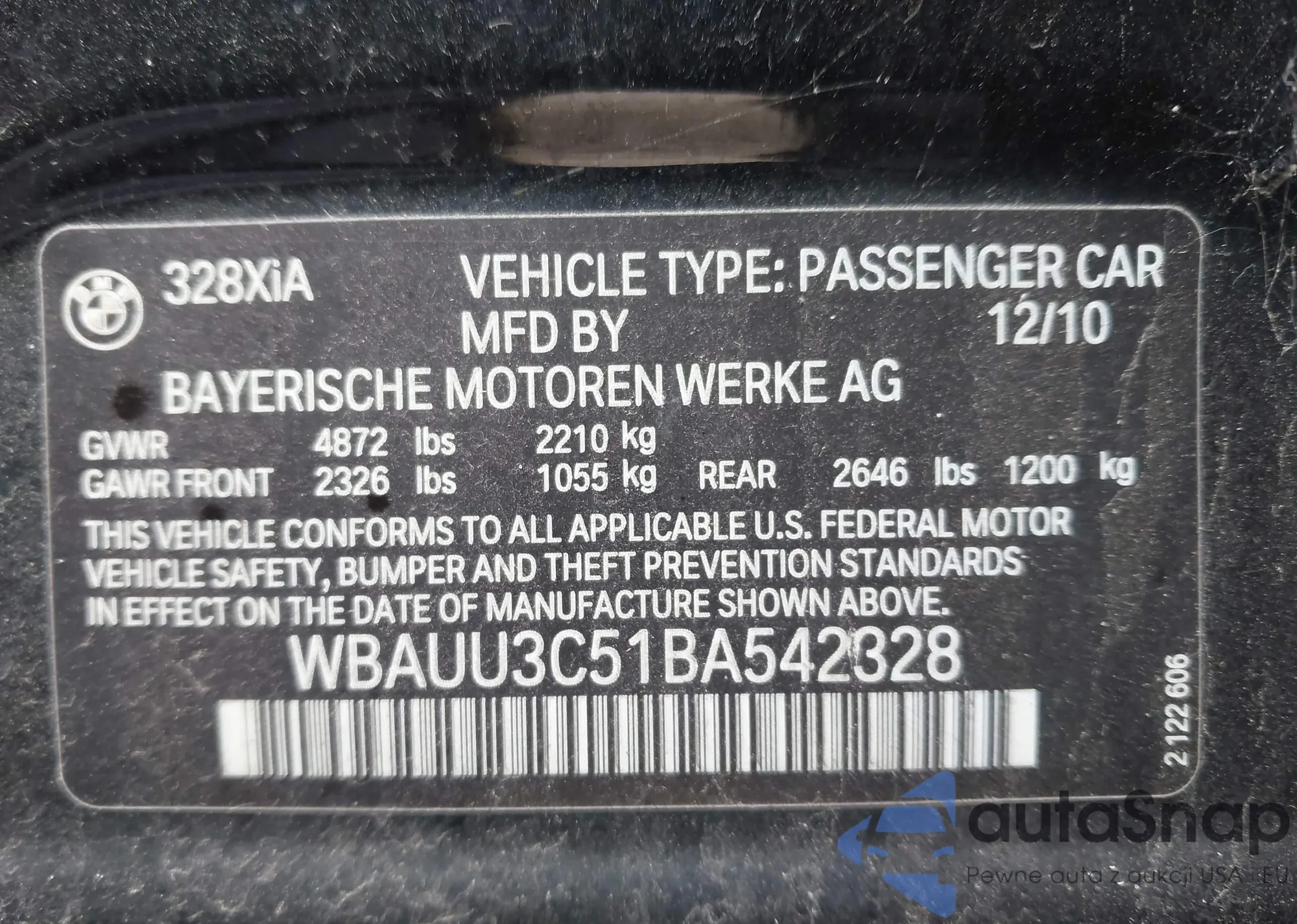 VIN: WBAUU3C51BA542328