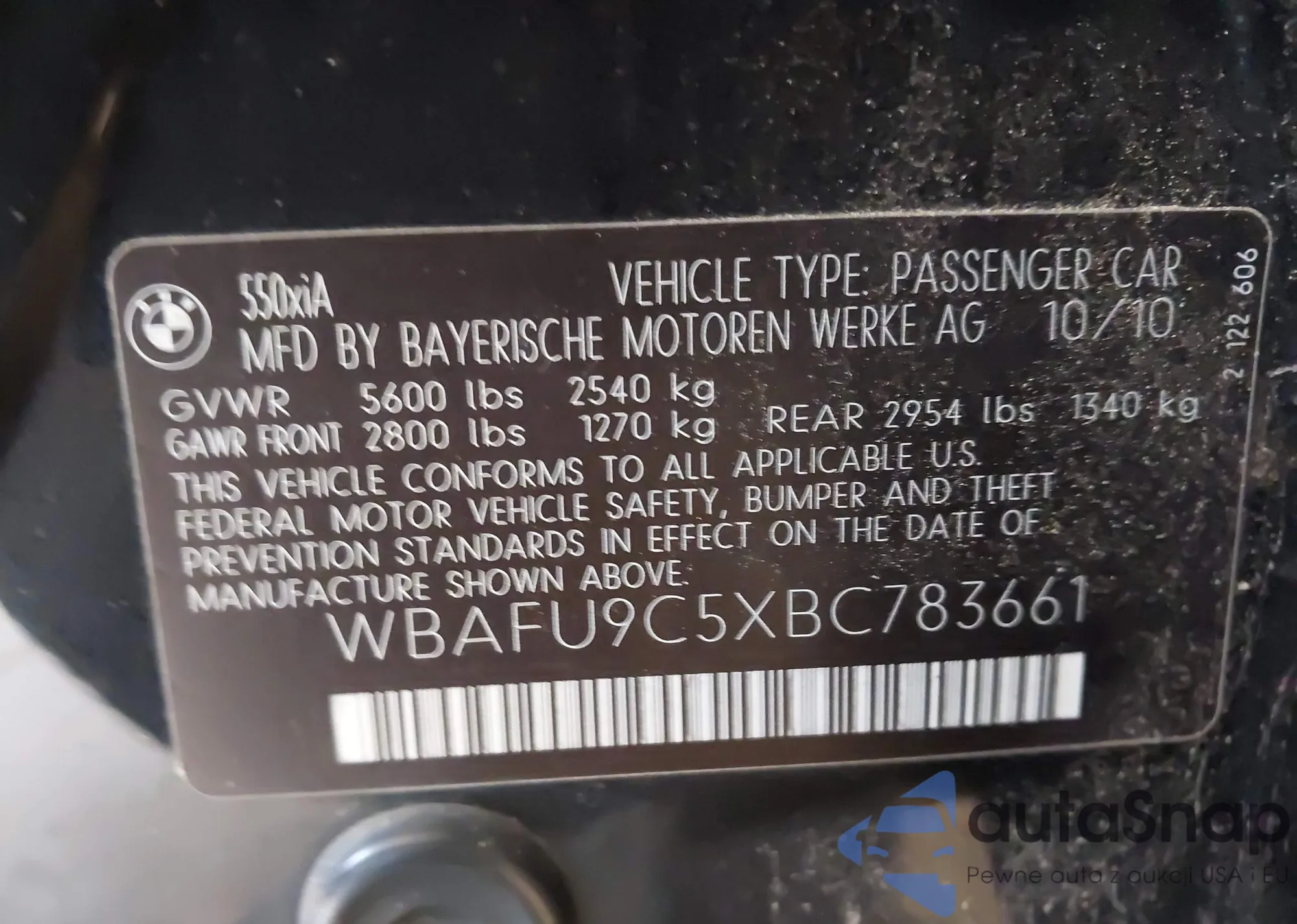 • VIN: WBAFU9C5XBC783661