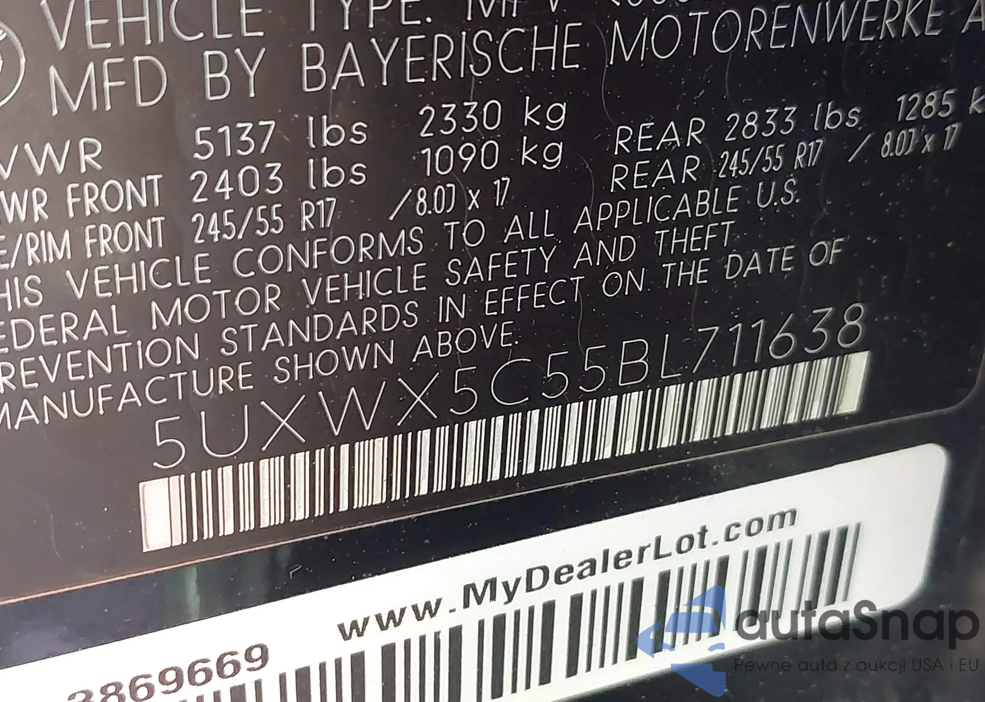 VIN: 5UXWX5C55BL711638