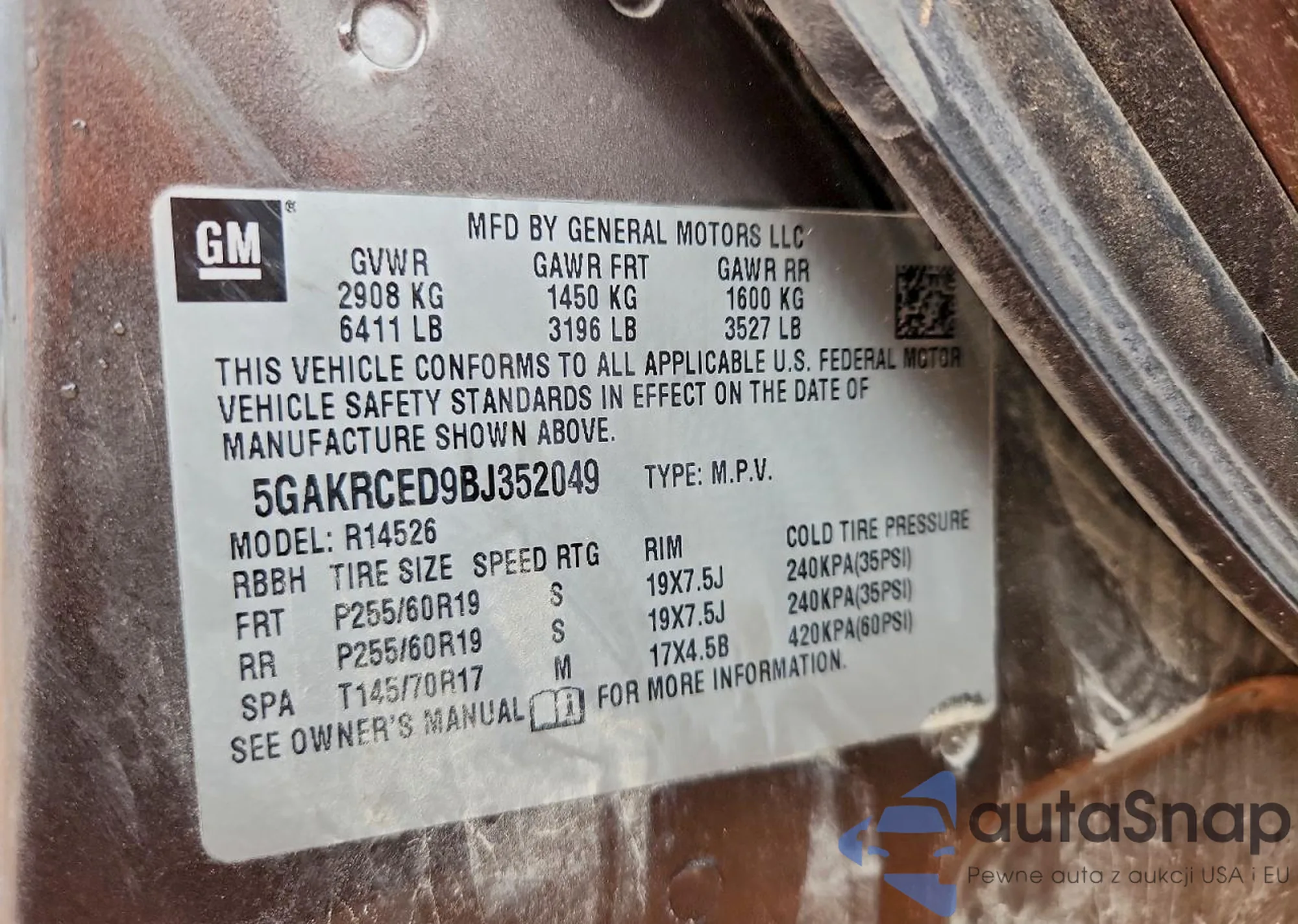 Samochód Buick Enclave 2011 (VIN 5GAKRCED9BJ352049) sprzedaje go niezweryfikowany sprzedawca. Zalecamy raport Carfax i potwierdzenie możliwości rejestracji pojazdu przed zakupem.