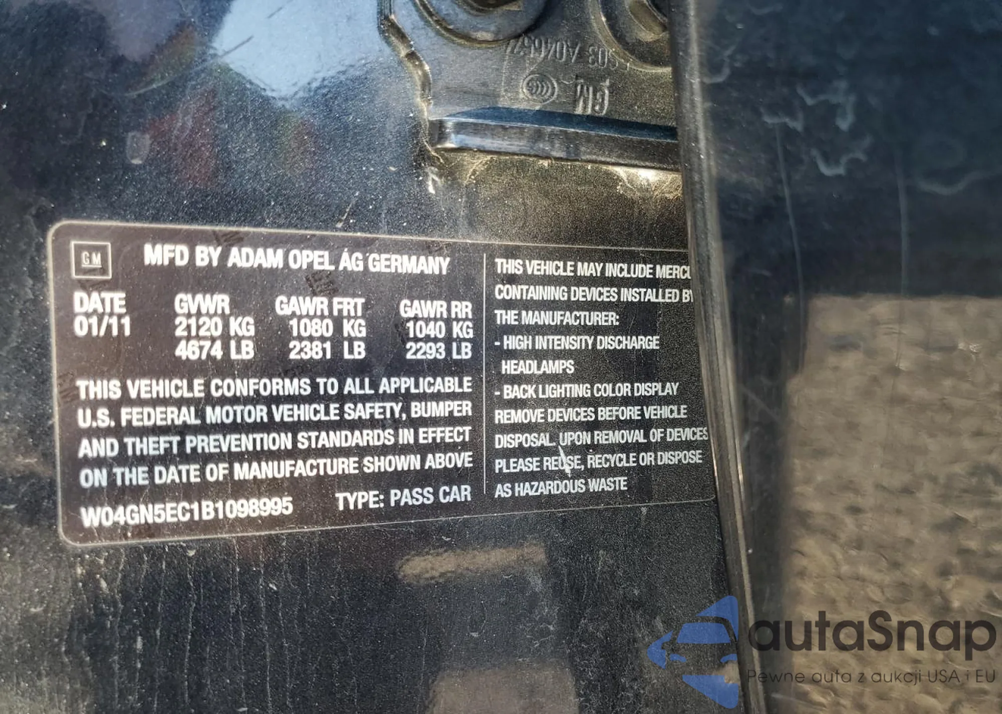 Samochód Buick Regal 2011 (VIN W04GN5EC1B1098995) ma dokumenty uniemożliwiające rejestrację. Mogą pojawić się trudności przy eksporcie i rejestracji. Skontaktuj się z ekspertami AutaSnap w celu znalezienia alternatywy.