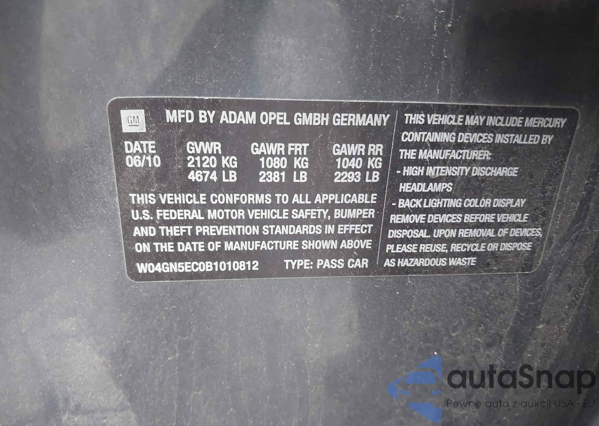 VIN: W04GN5EC0B1010812
