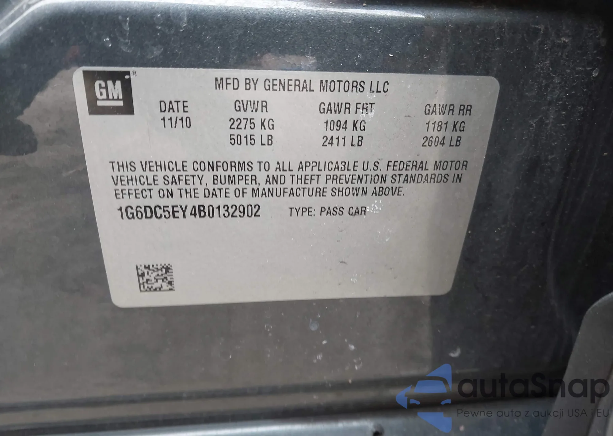 • VIN: 1G6DC5EY4B0132902