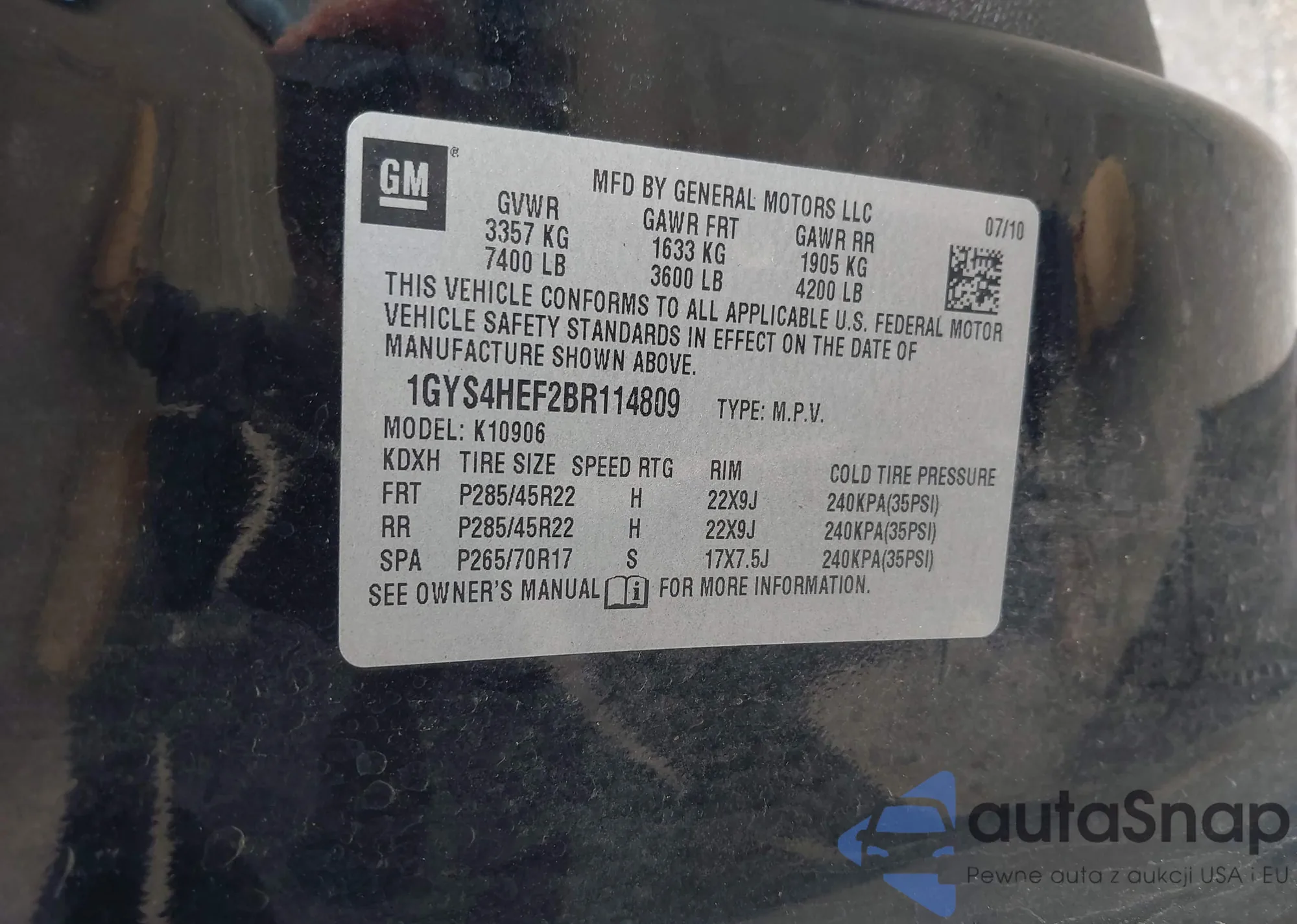 VIN: 1GYS4HEF2BR114809