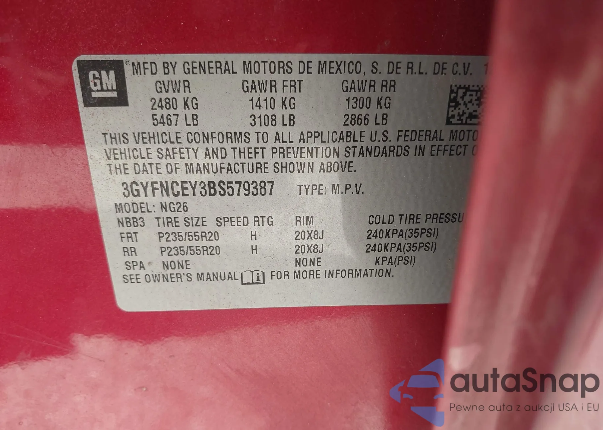 VIN: 3GYFNCEY3BS579387