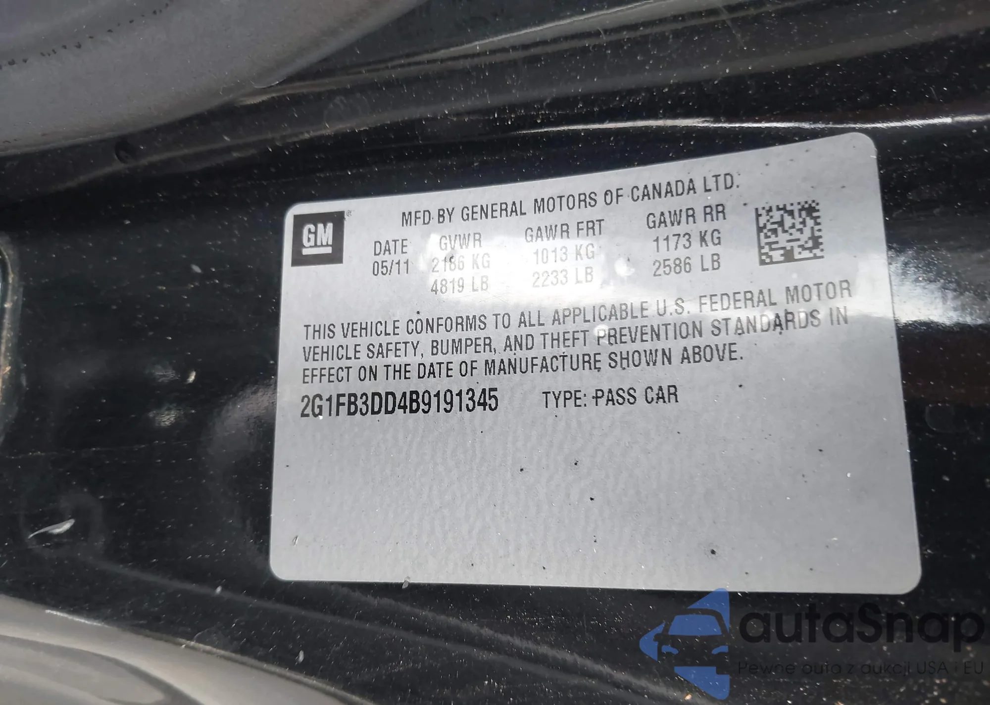 VIN: 2G1FB3DD4B9191345