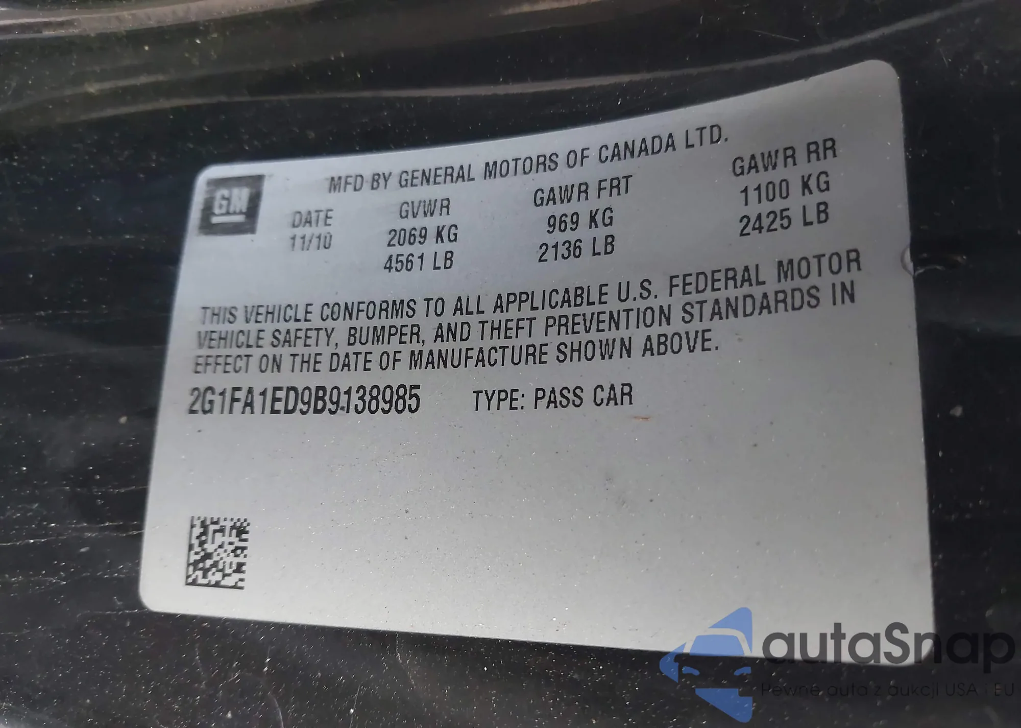 VIN: 2G1FA1ED9B9138985
