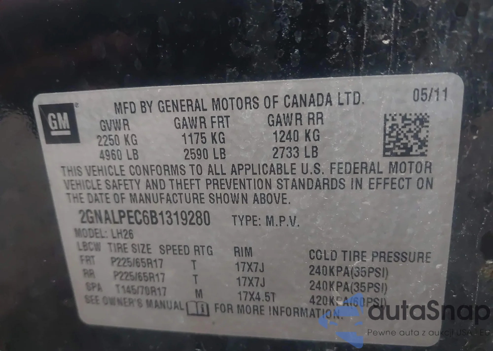 VIN: 2GNALPEC6B1319280