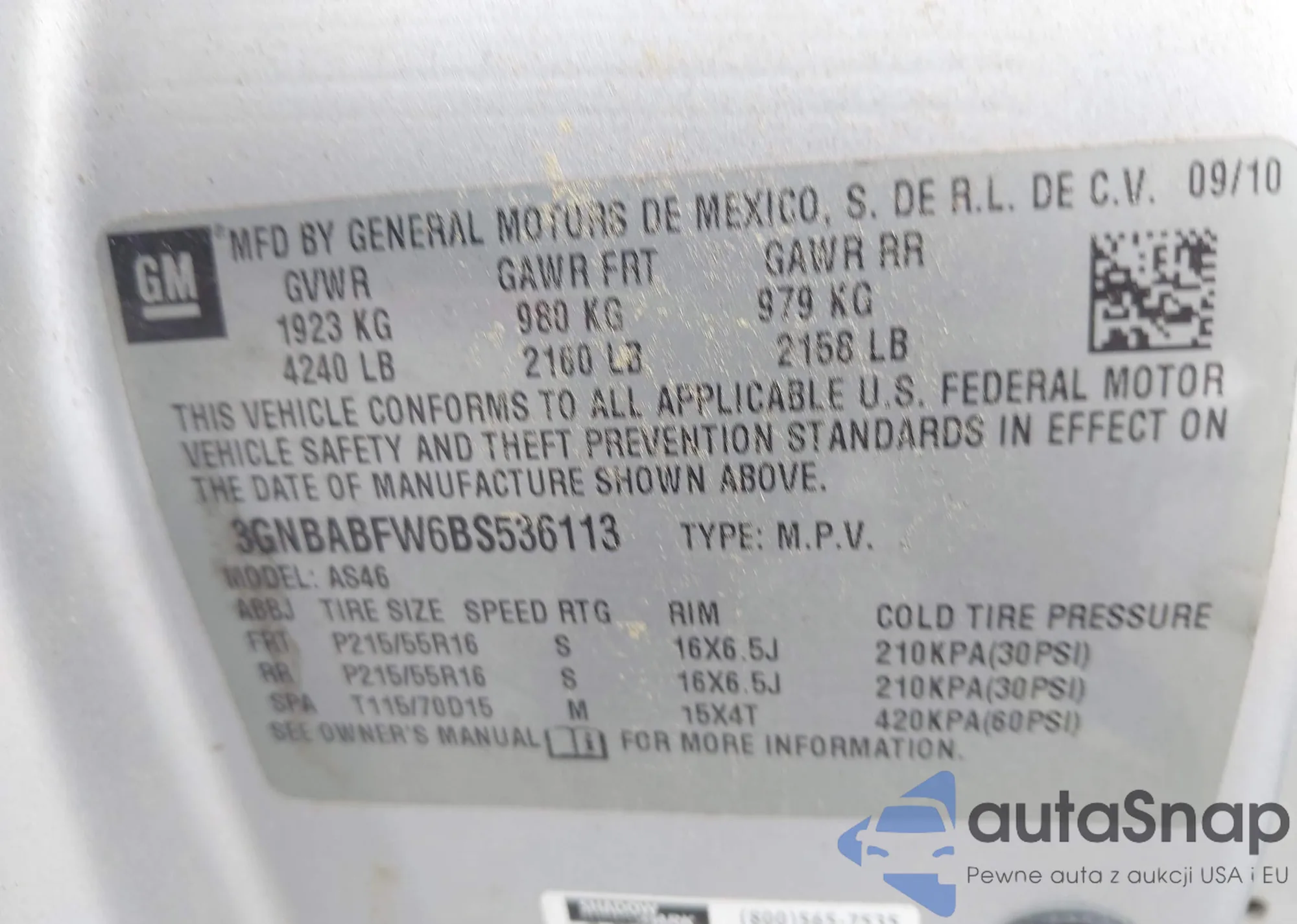 VIN: 3GNBABFW6BS536113