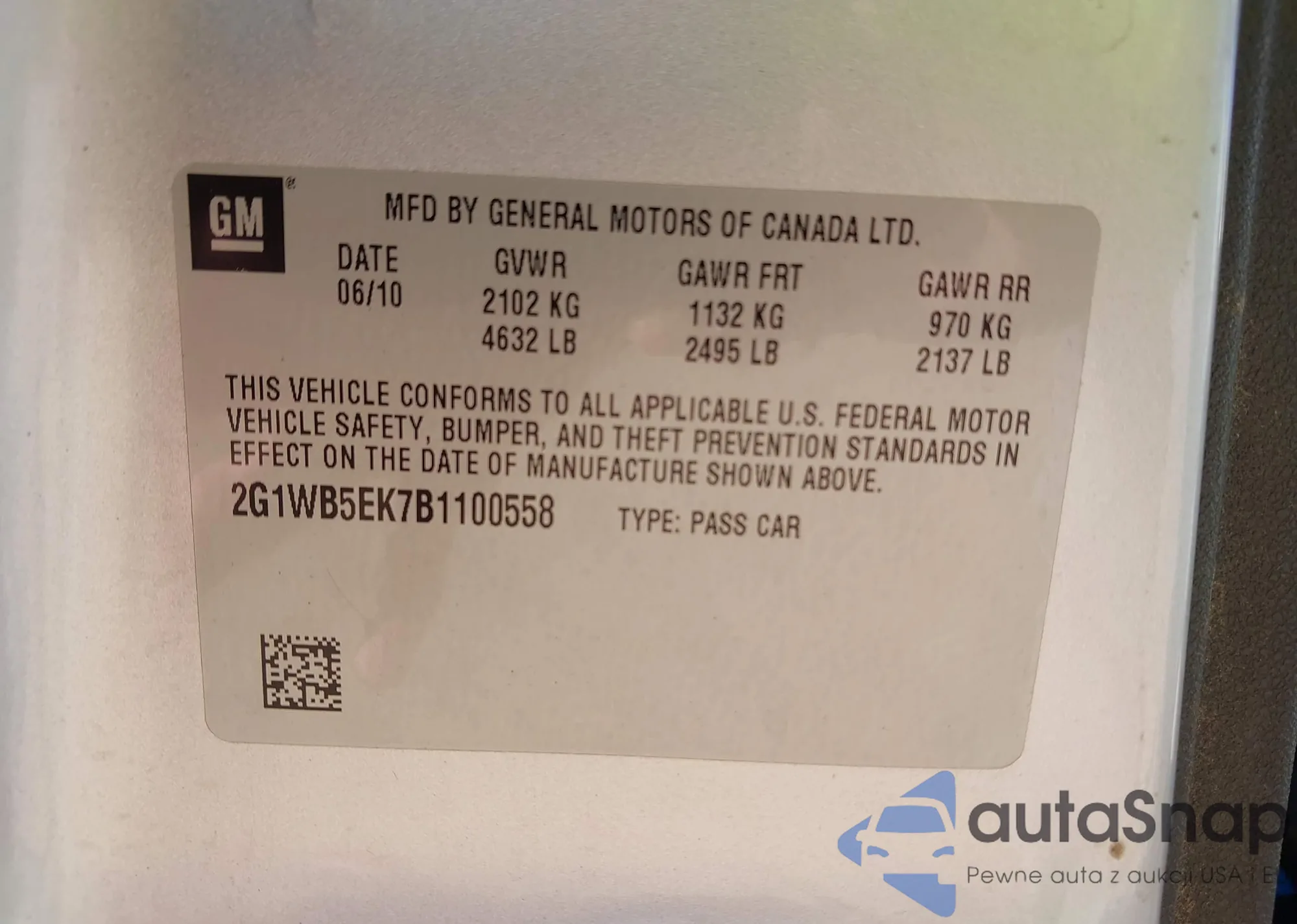 VIN: 2G1WB5EK7B1100558
