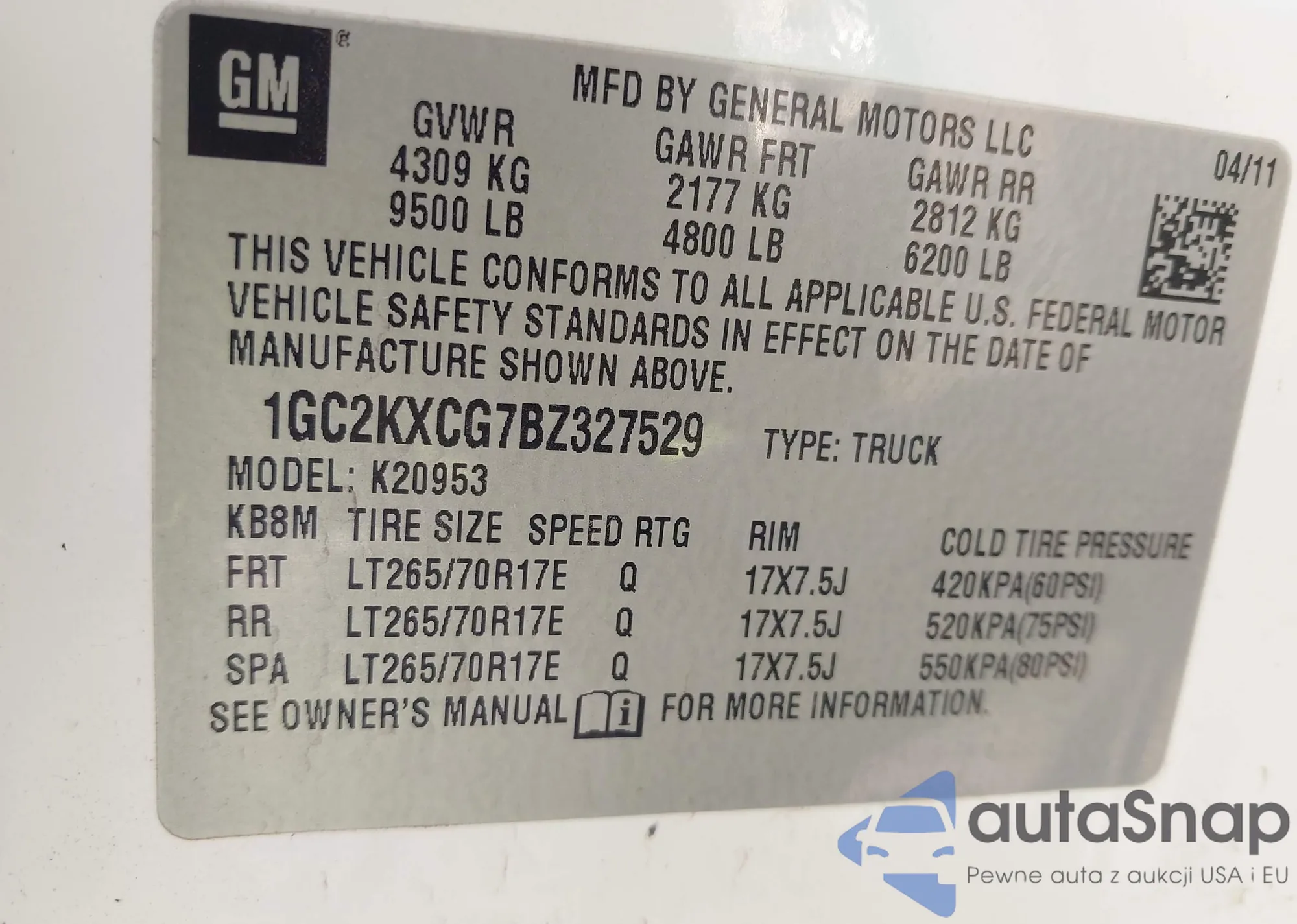 VIN: 1GC2KXCG7BZ327529