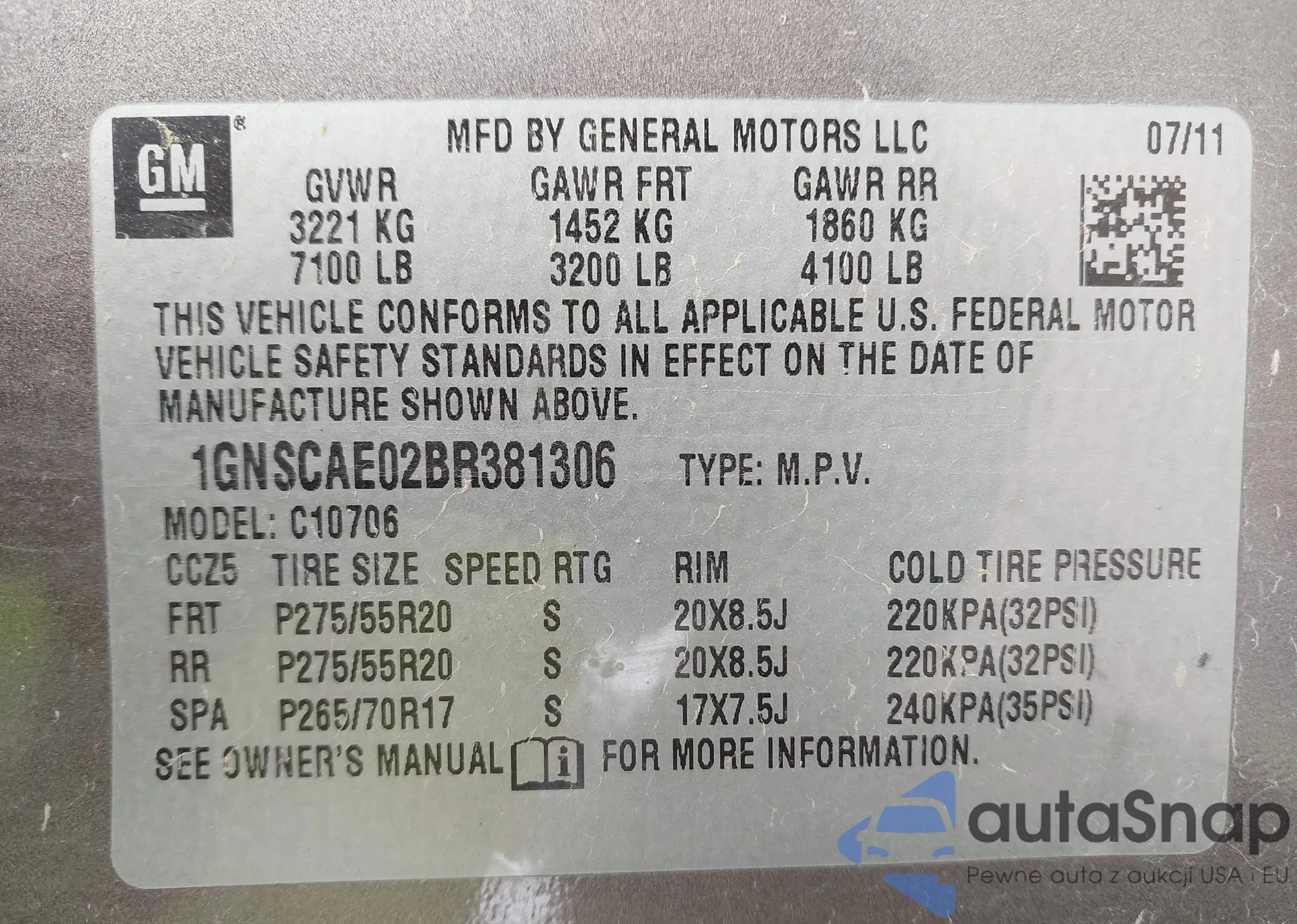 VIN: 1GNSCAE02BR381306