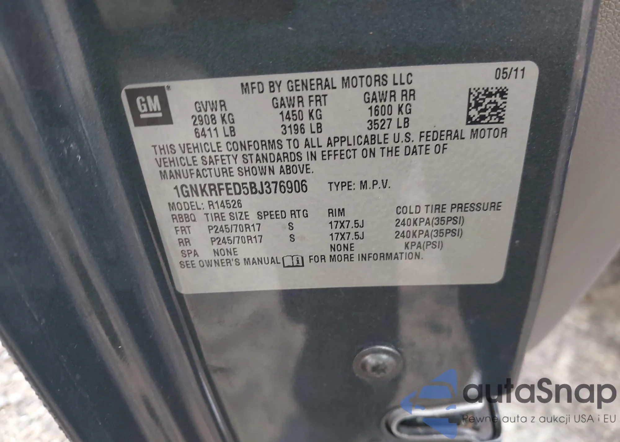 VIN: 1GNKRFED5BJ376906