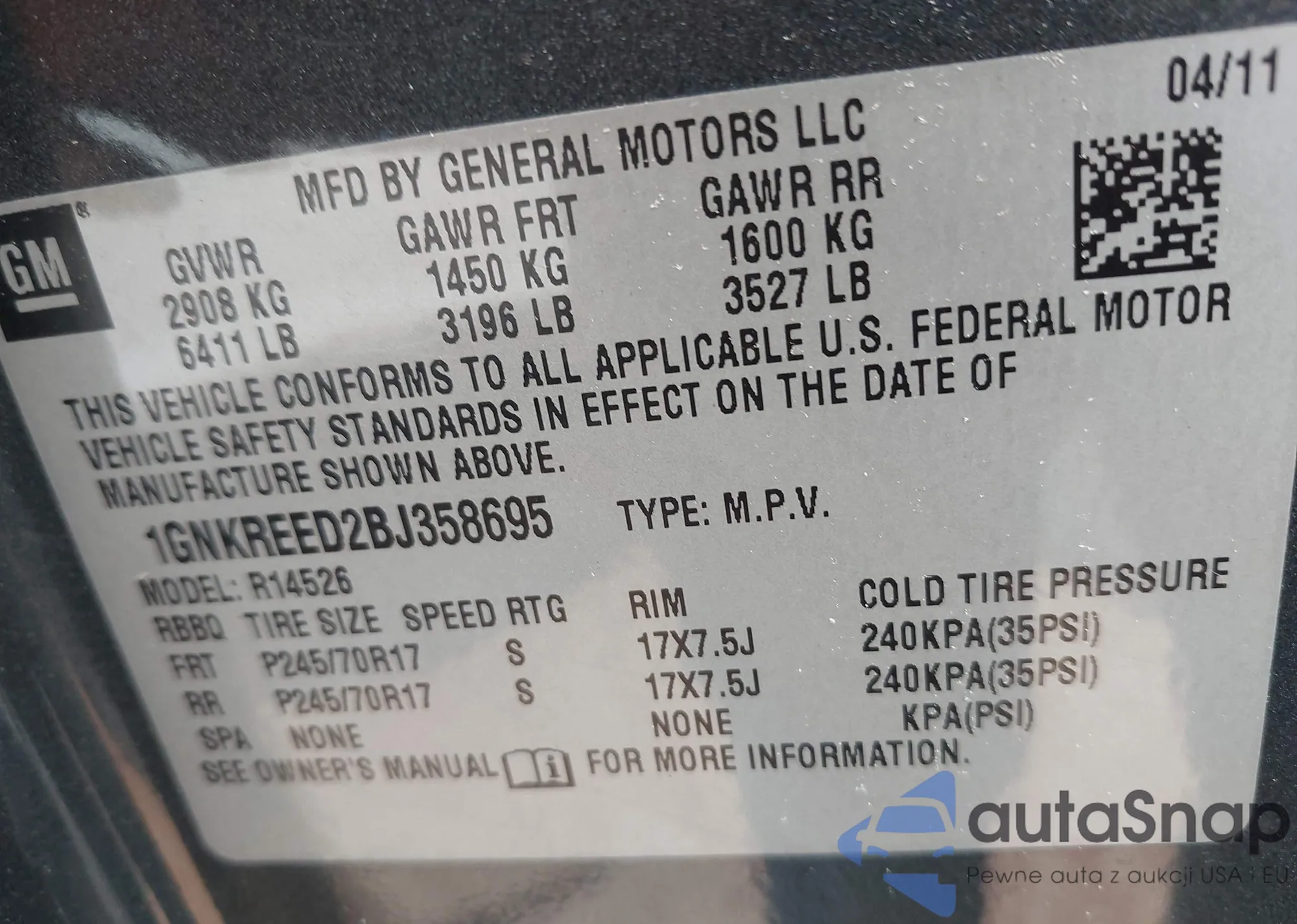 VIN: 1GNKREED2BJ358695