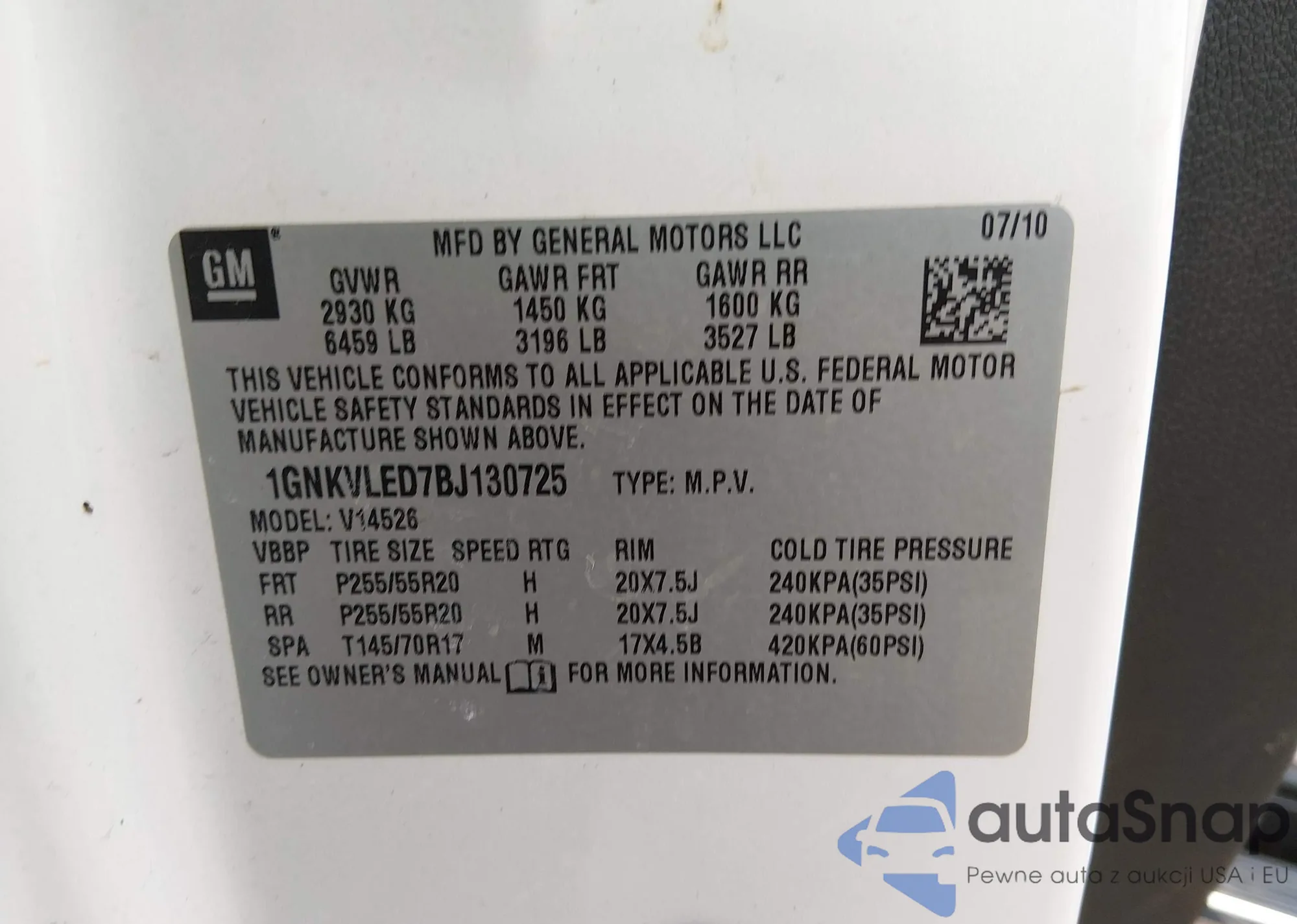 Samochód Chevrolet Traverse 2011 (VIN 1GNKVLED7BJ130725) sprzedaje go niezweryfikowany sprzedawca. Zalecamy raport Carfax i potwierdzenie możliwości rejestracji pojazdu przed zakupem.