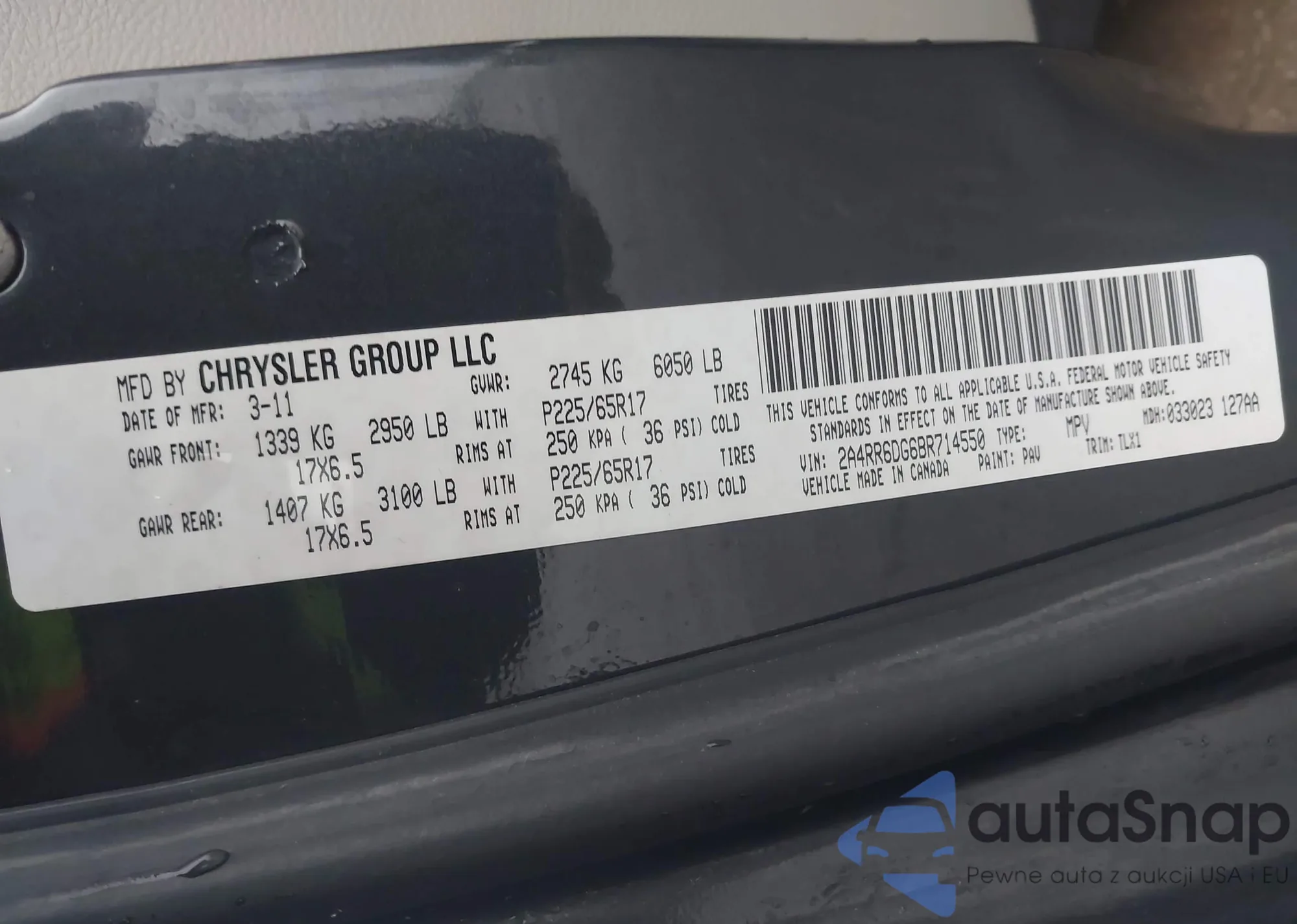 • VIN: 2A4RR6DG6BR714550