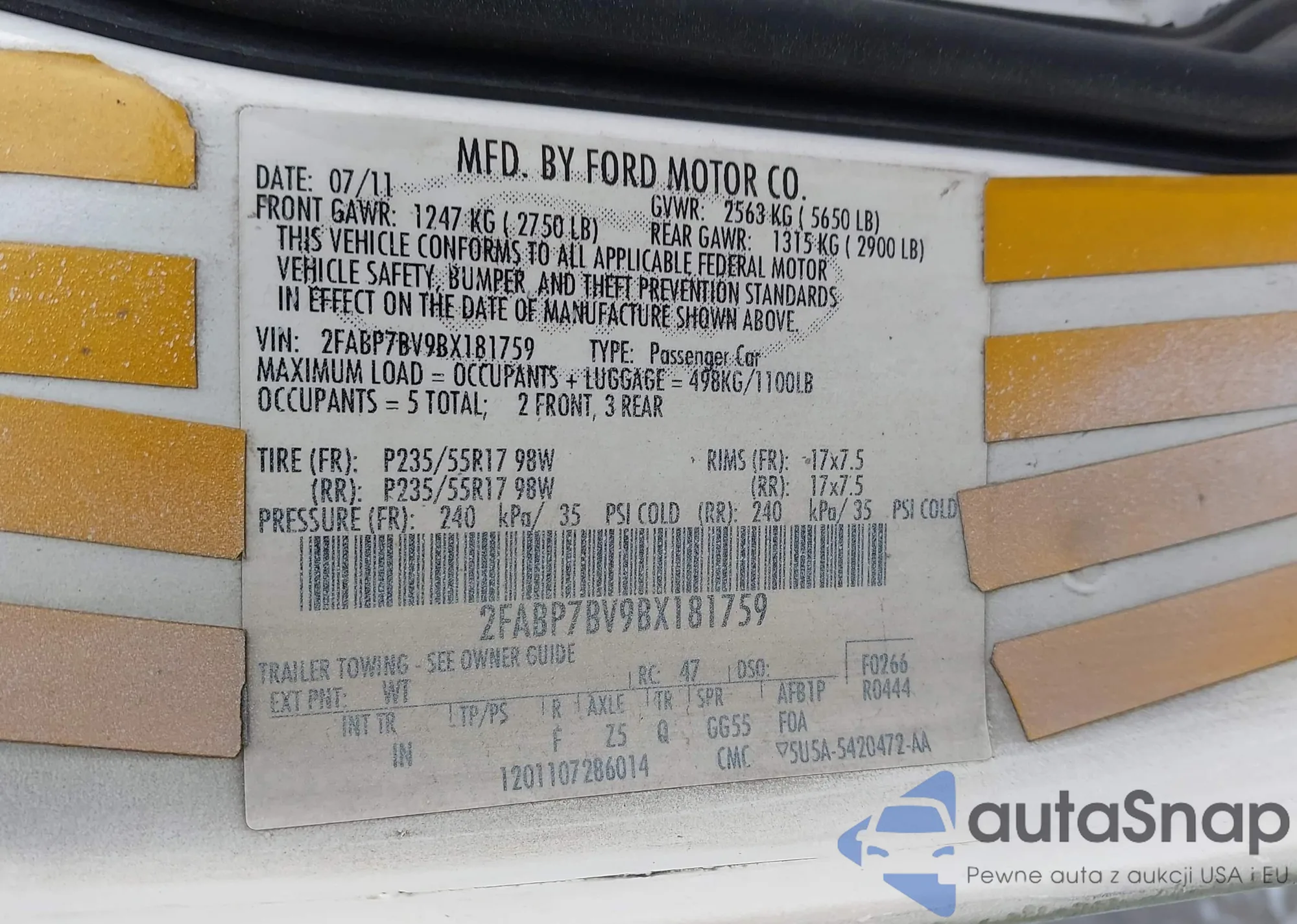 Samochód Ford Crown Victoria 2011 (VIN 2FABP7BV9BX181759) nie był wcześniej licytowany. Dokumenty są czyste, przebieg odpowiada lub jest niższy niż średnia rynku. Sprzedaje go firma ubezpieczeniowa – polecamy zakup. Dostawa do portu zajmie ok. 6–8 tygodni.